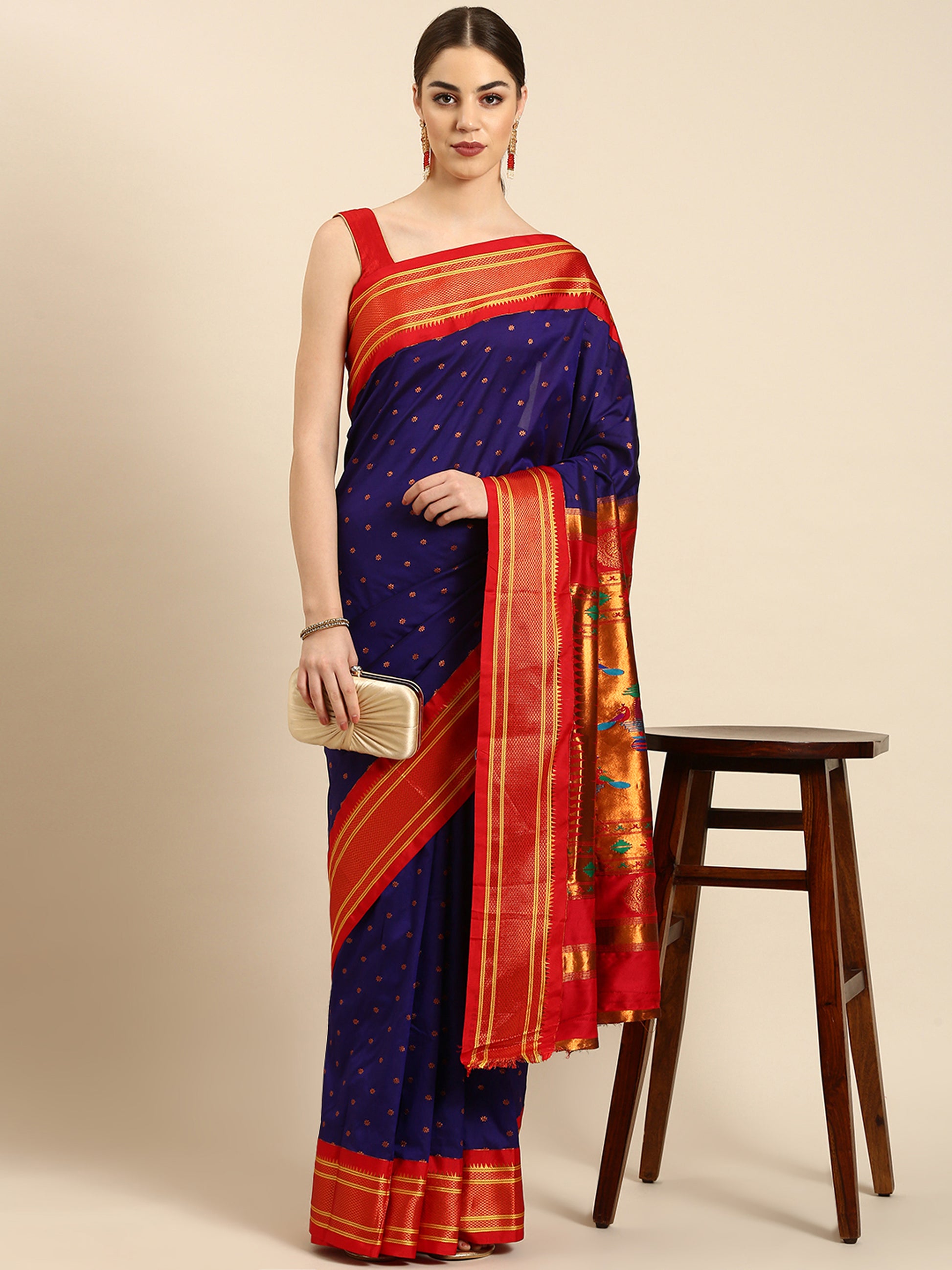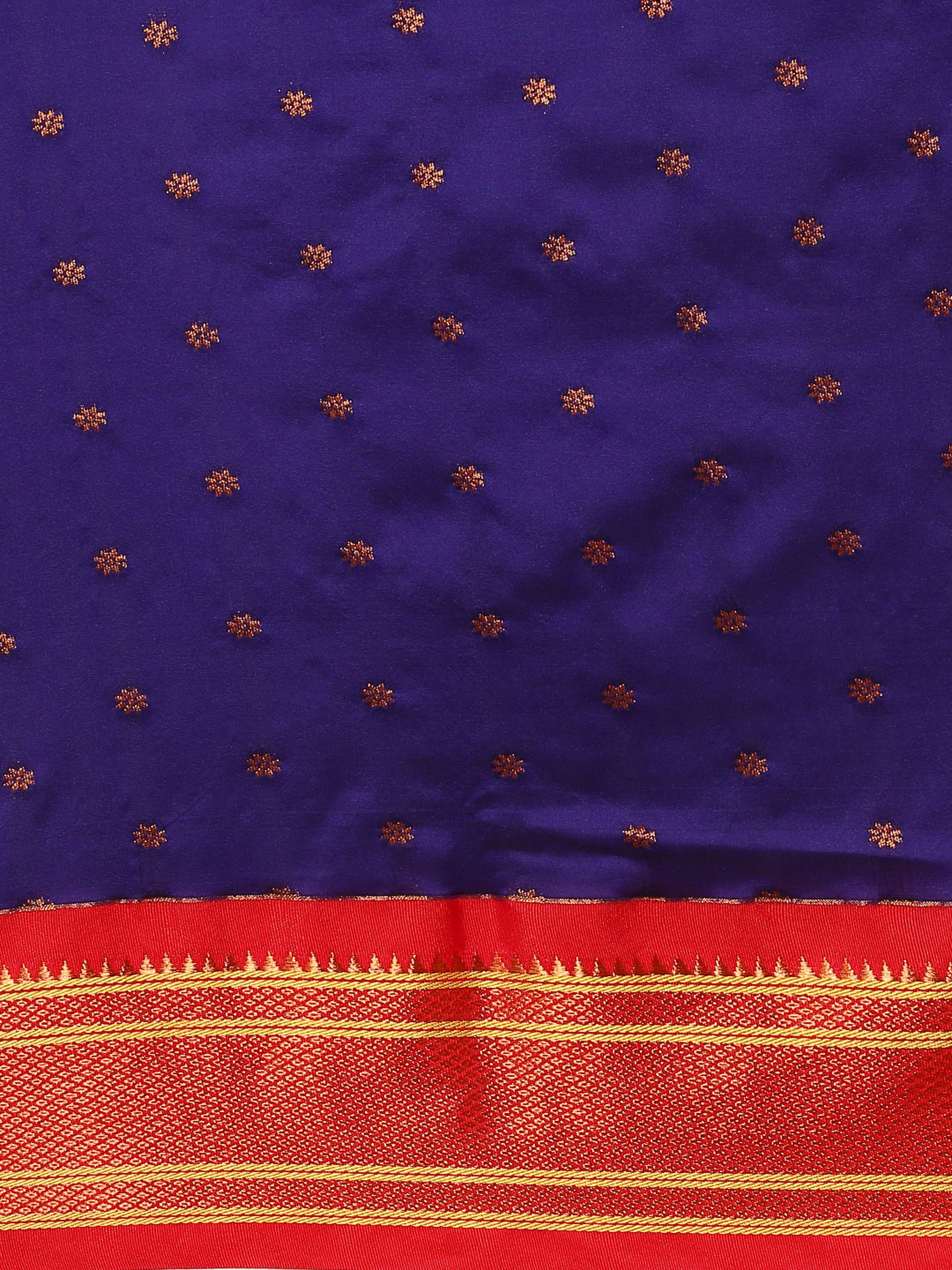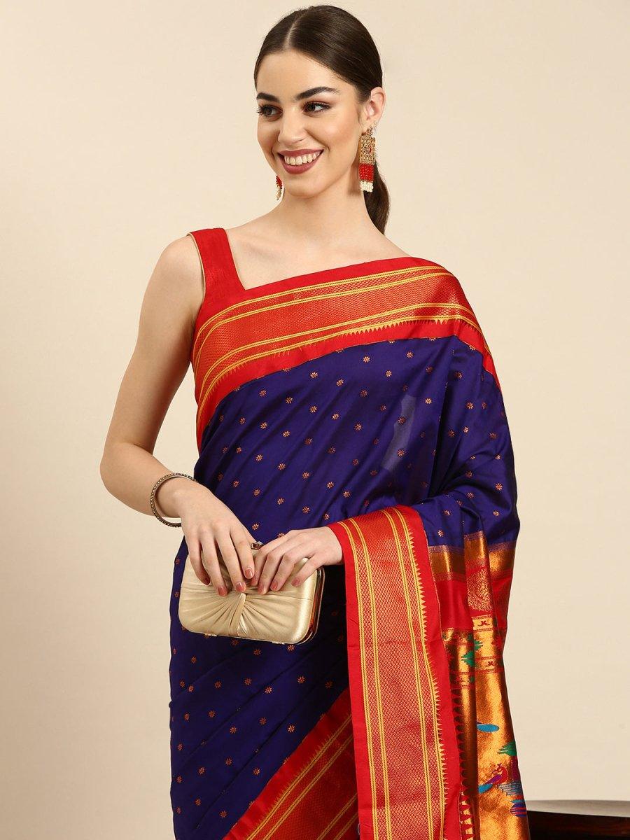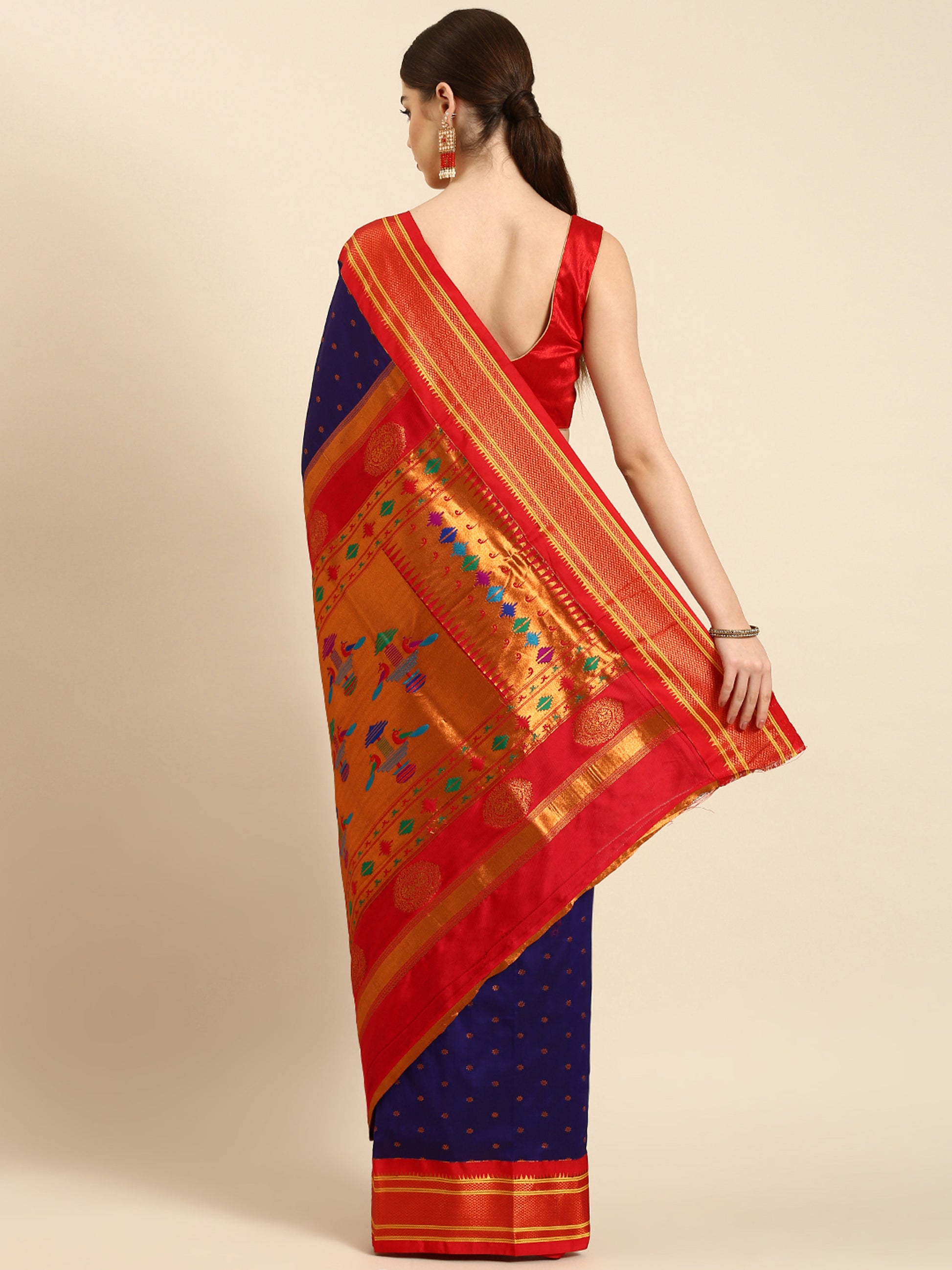 Rashmika Indigo Blue & Red Soft Silk Double Pallu Paithani Saree