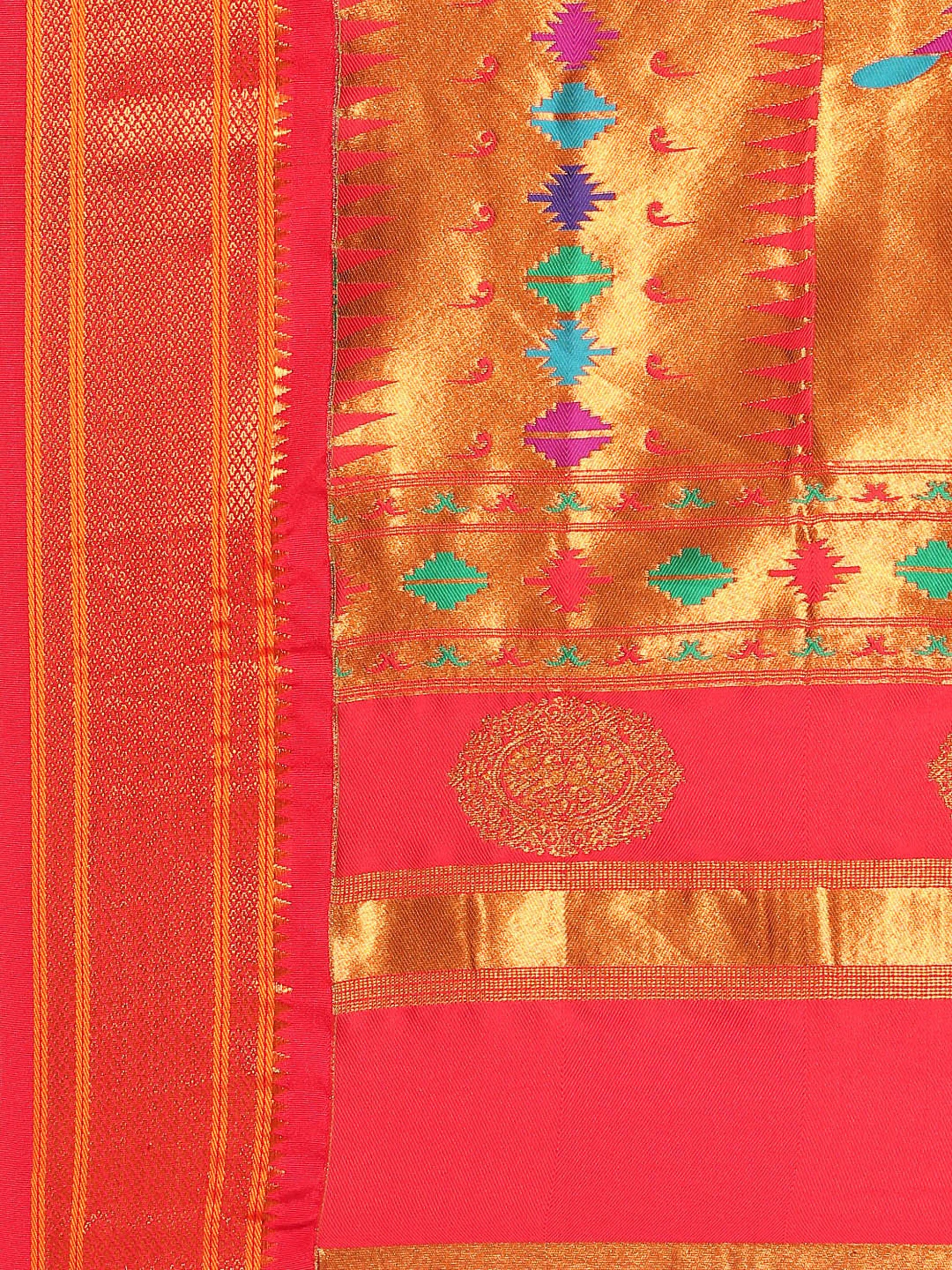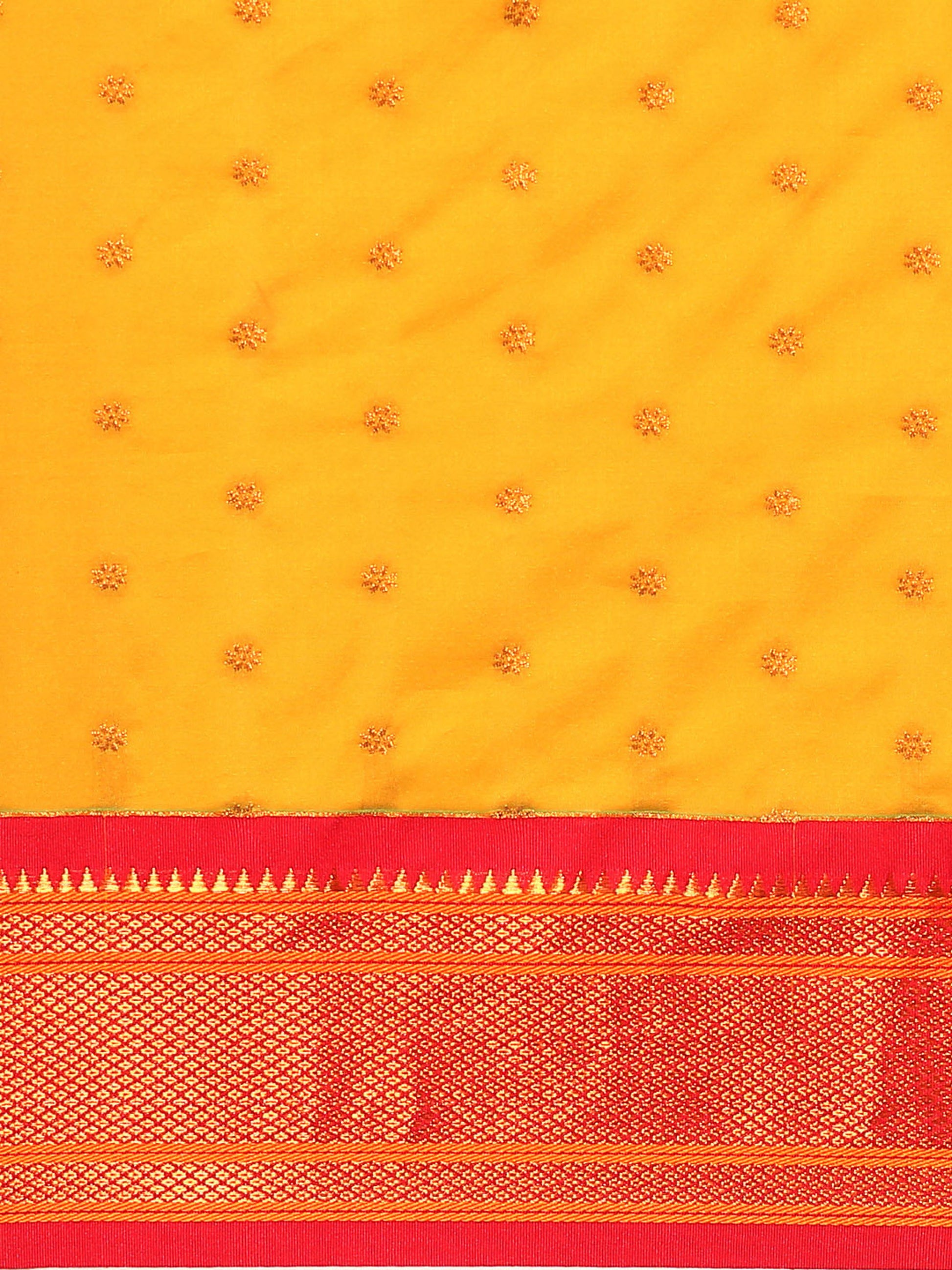 Rashmika Mustard & Red Soft Silk Double Pallu Paithani Saree