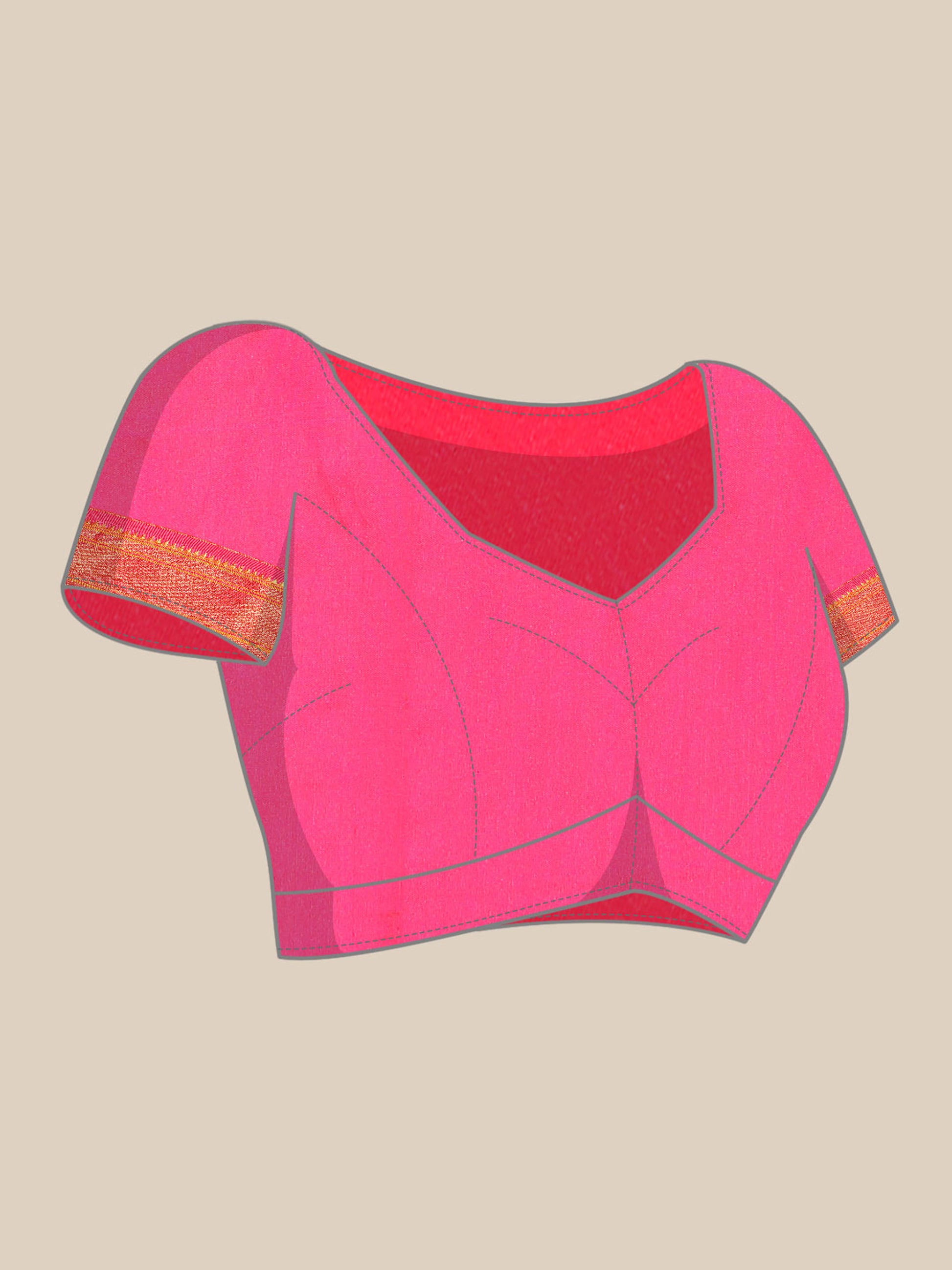 - Pallu Work Type: Copper Zari Woven Muniya & Peacock Motifs