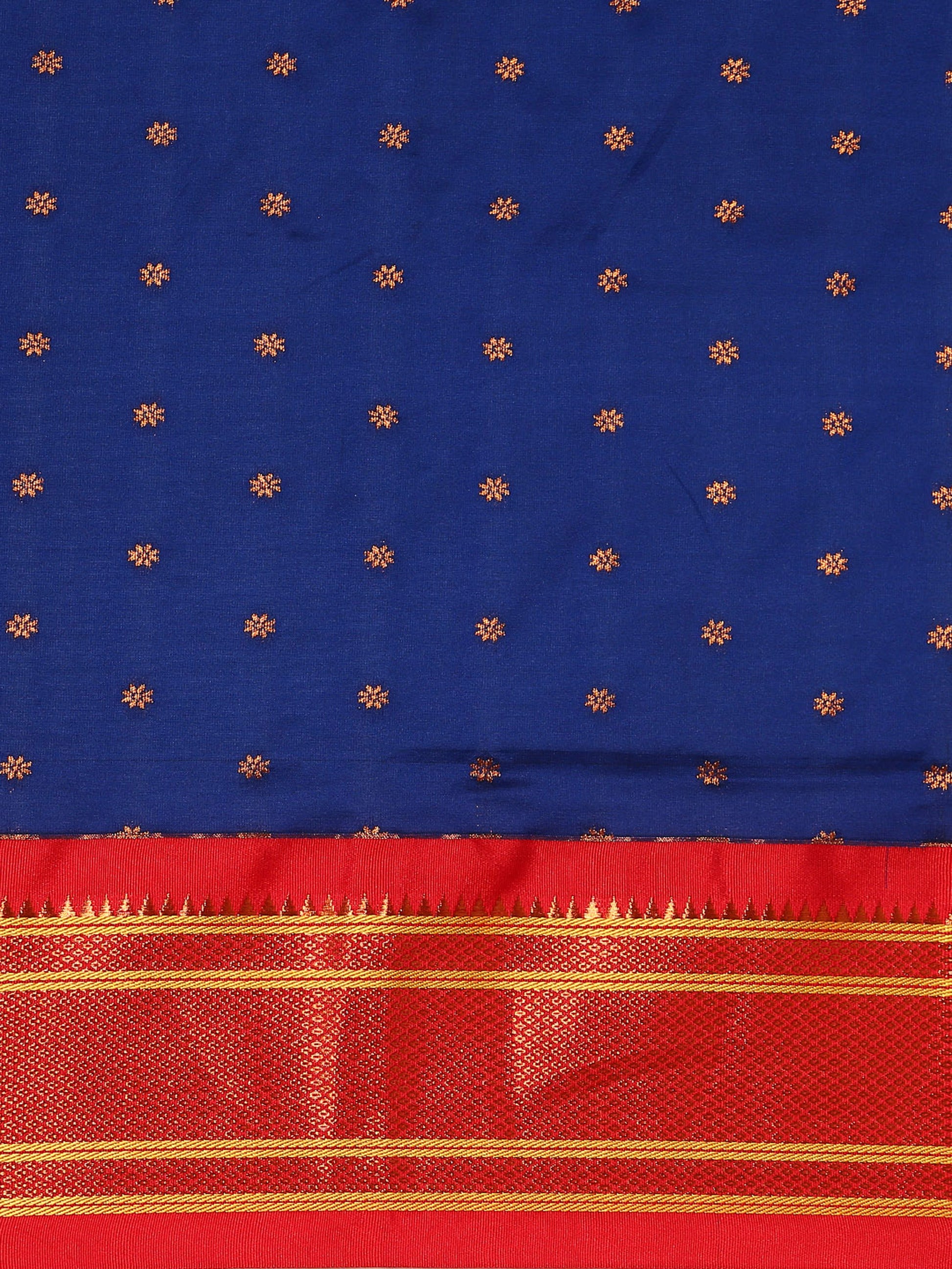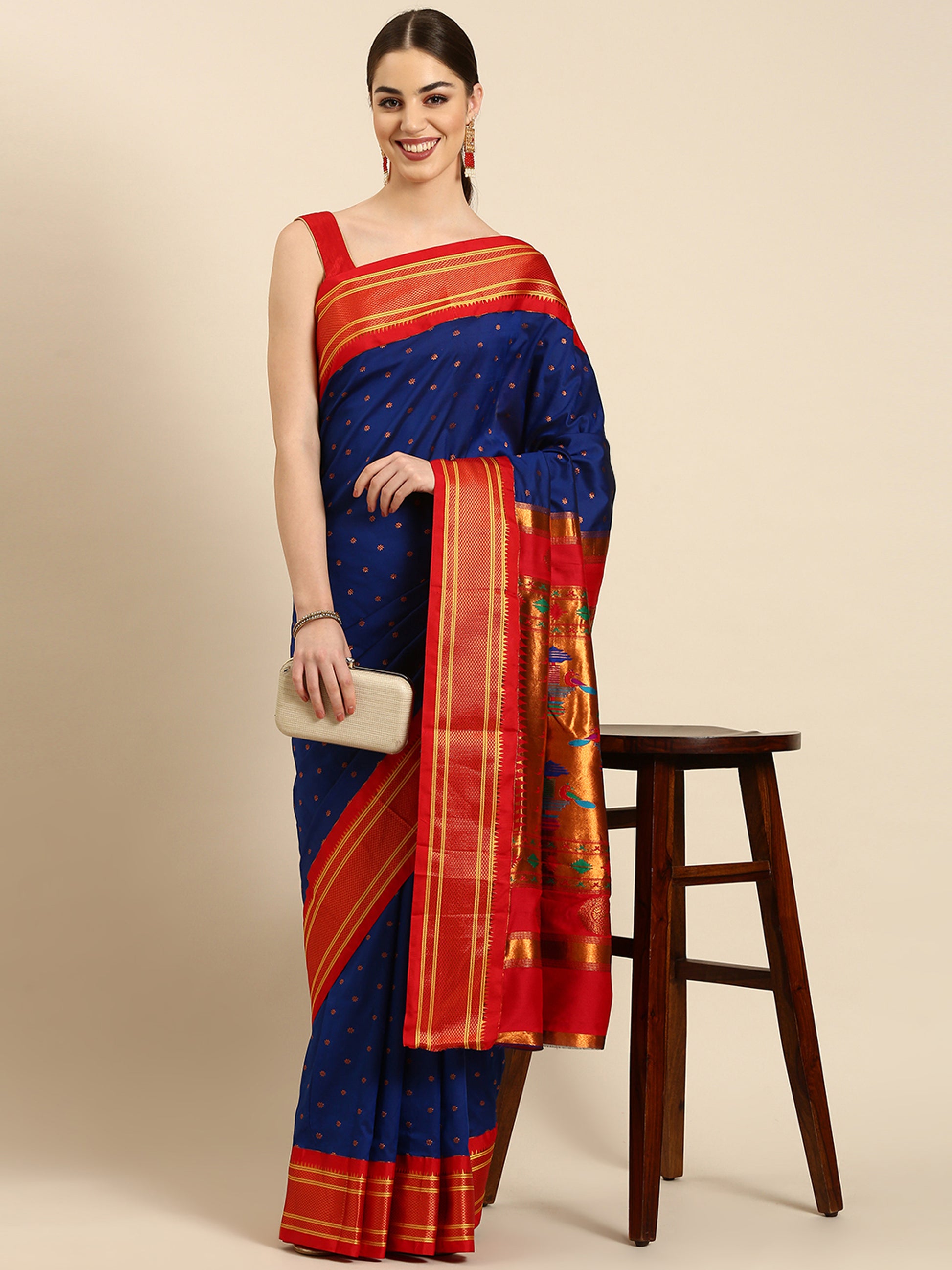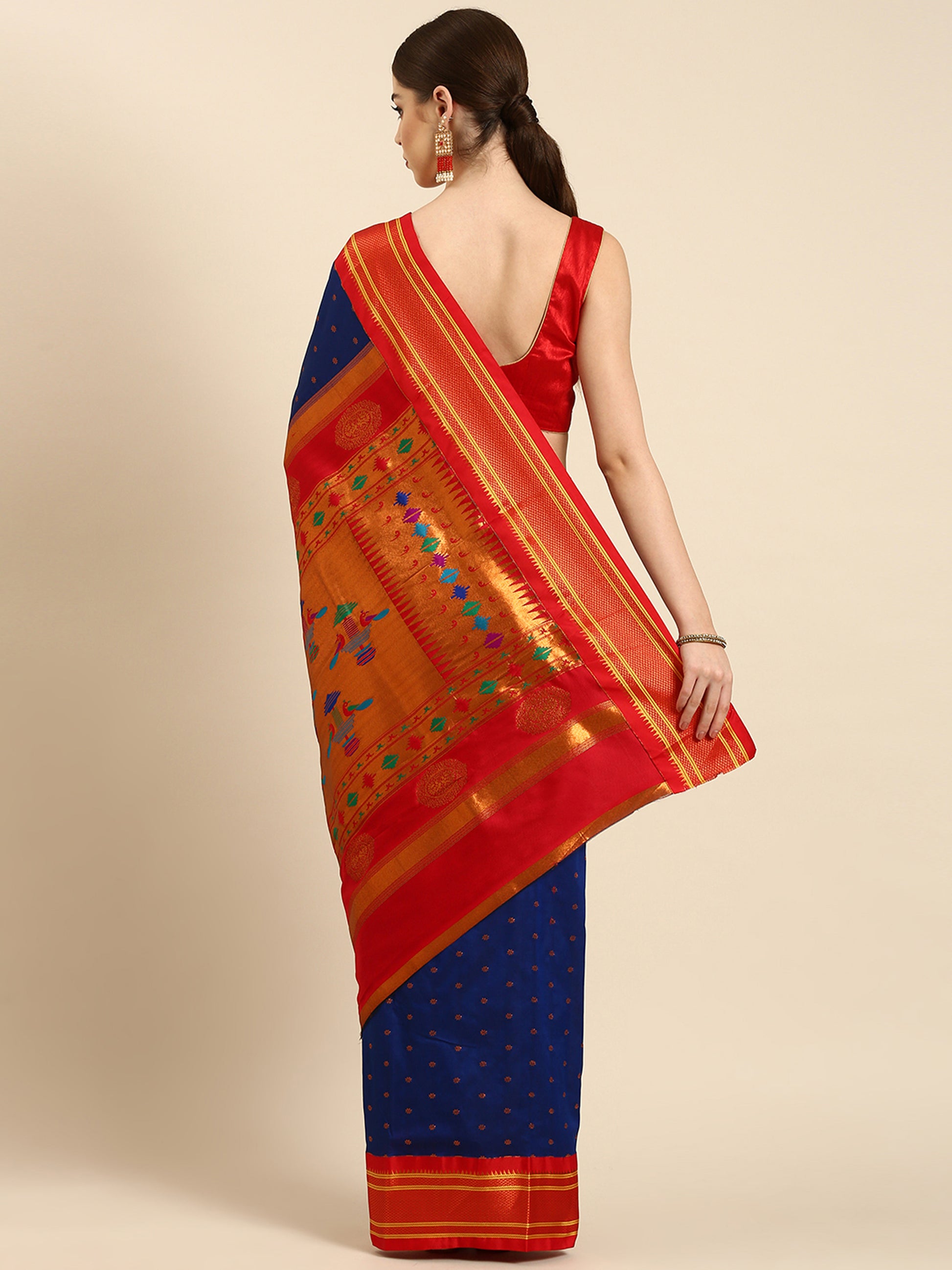 Rashmika Royal Blue & Red Soft Silk Double Pallu Paithani Saree