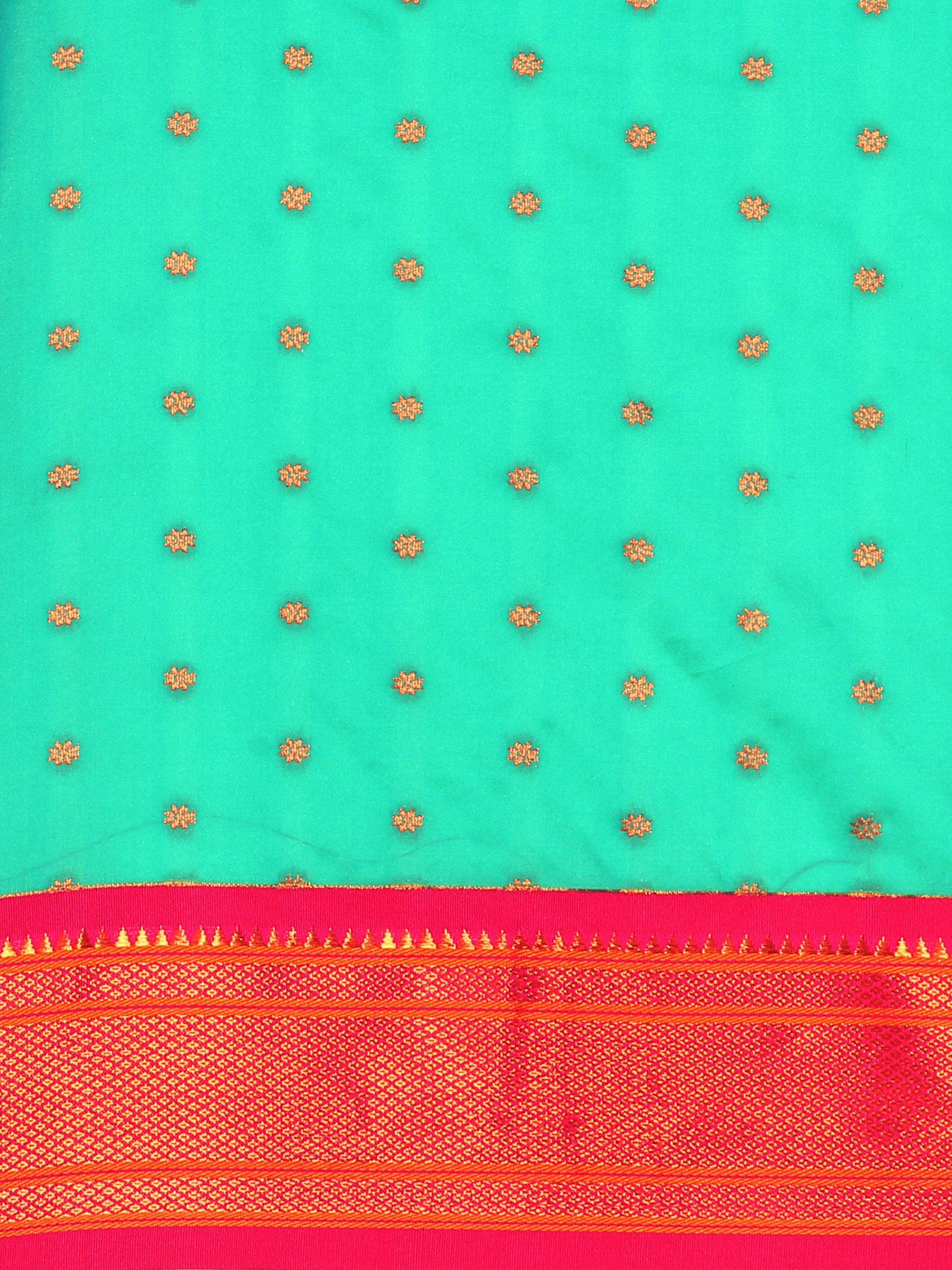 Rashmika Sea Green & Pink Soft Silk Double Pallu Paithani Saree