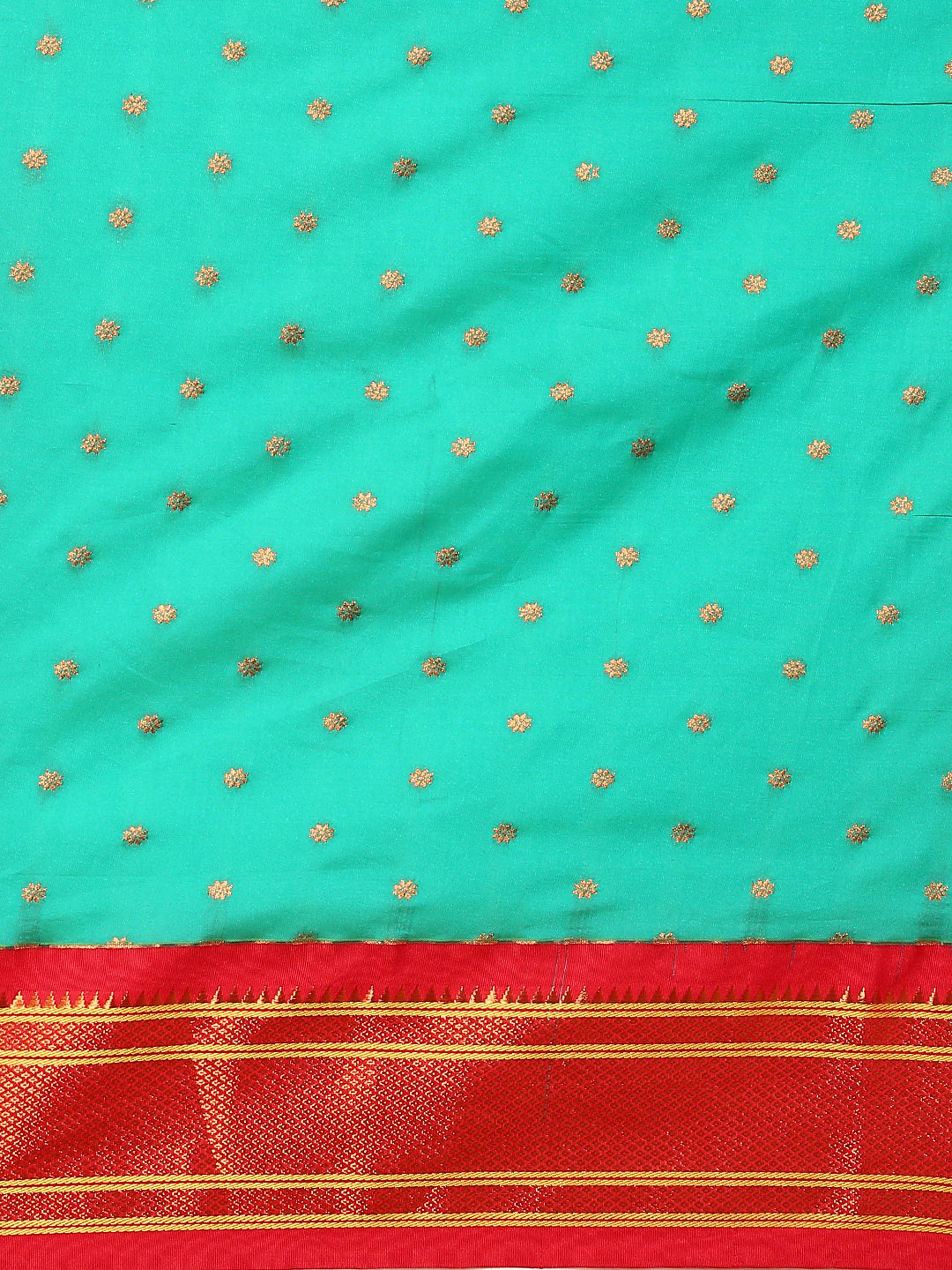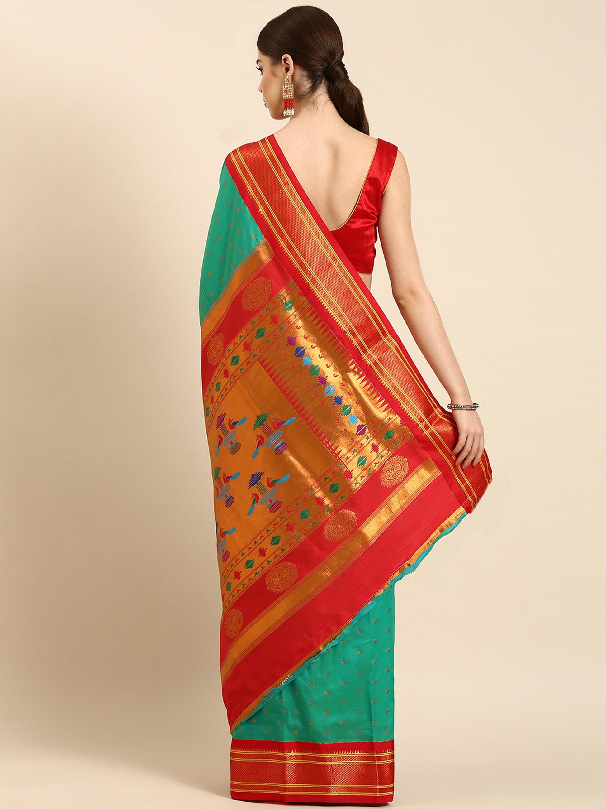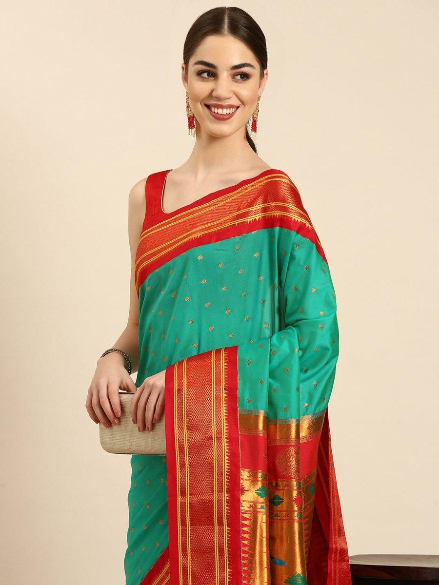 Rashmika Sea Green & Red Soft Silk Double Pallu Paithani Saree