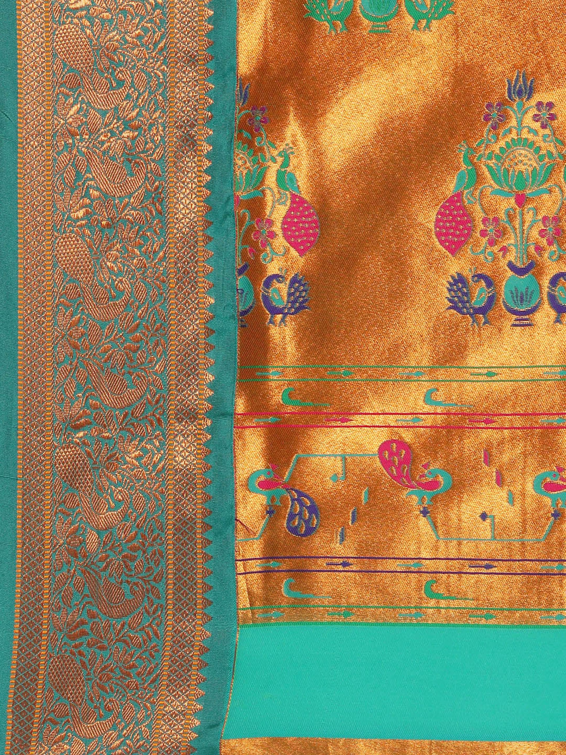 - Saree Work Type: Copper Zari Peshwai Nath Meena Butti