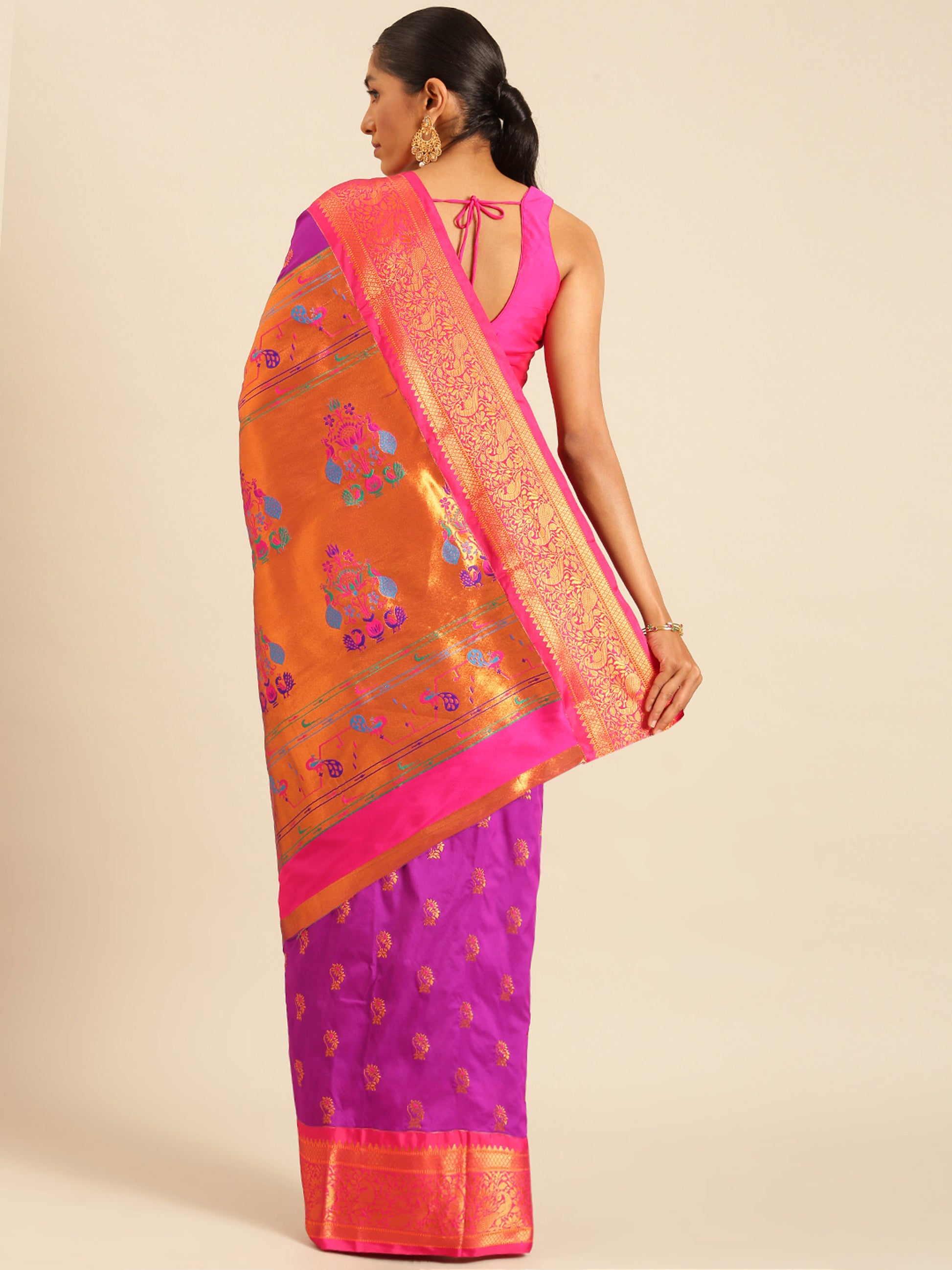 Sonkali Purple & Pink Soft Silk Peshwai Nath Paithani Saree