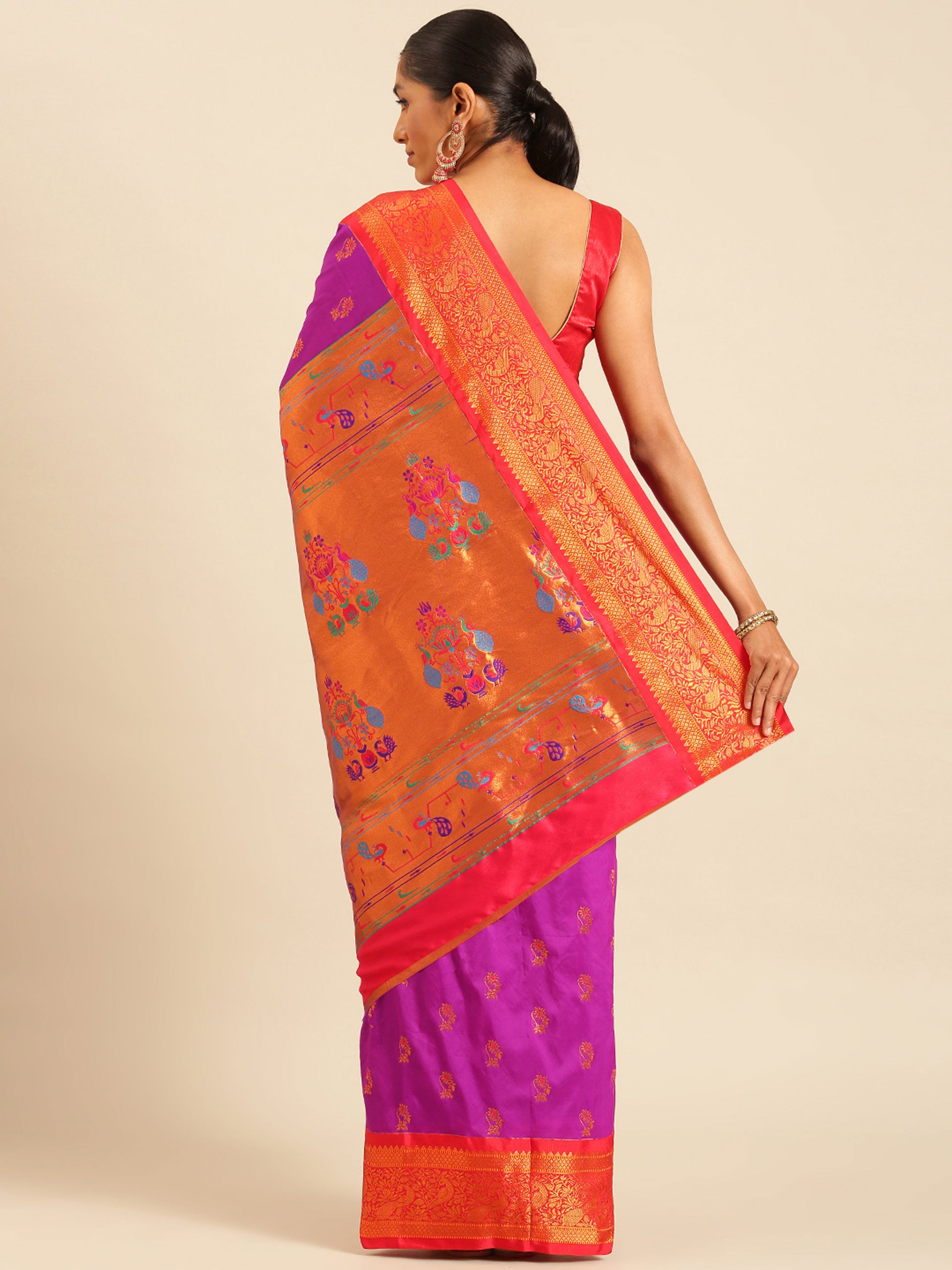 Sonkali Purple & Red Soft Silk Peshwai Nath Paithani Saree