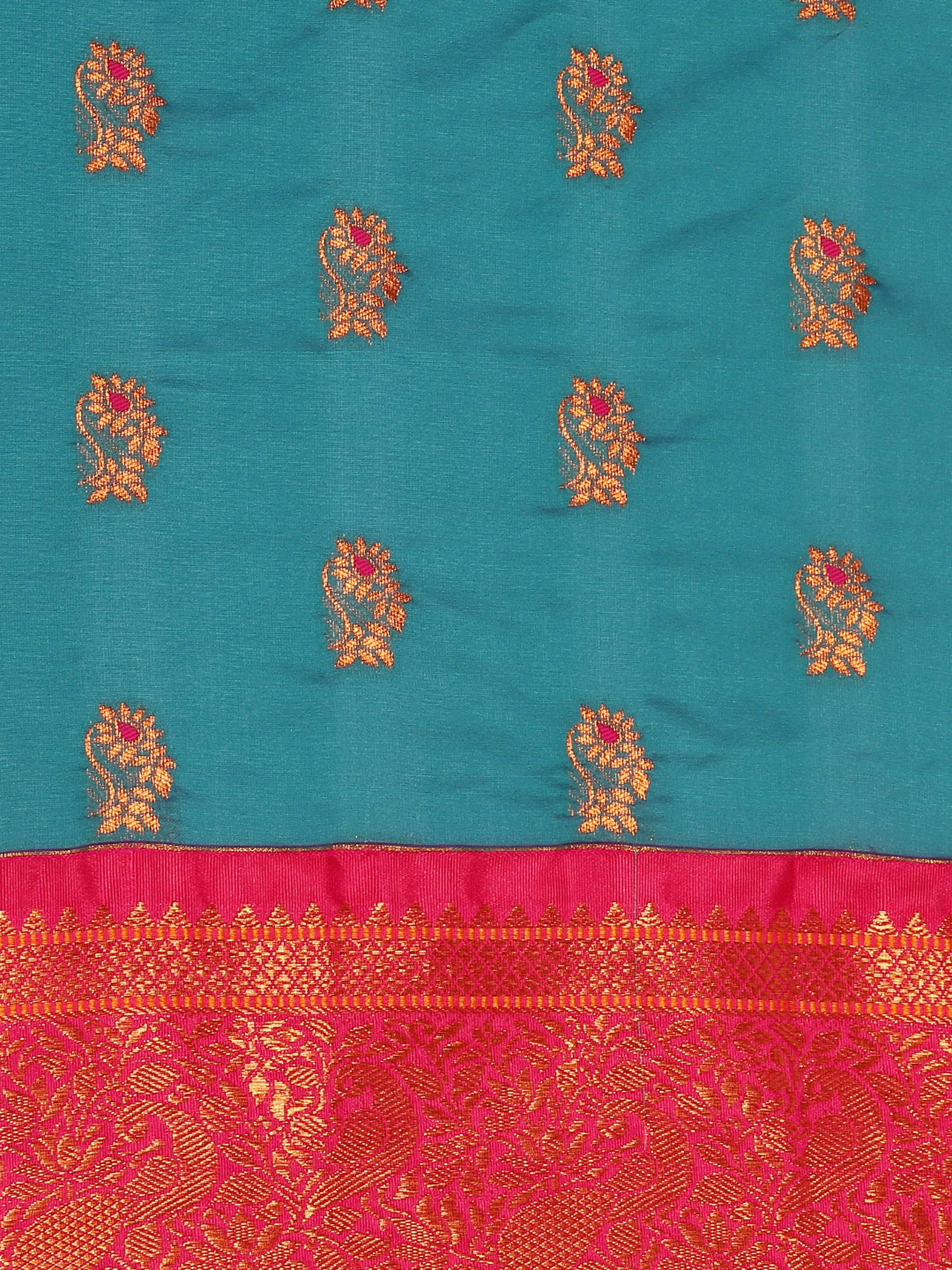- Pallu Work Type: Copper Zari Woven Peacock Motifs