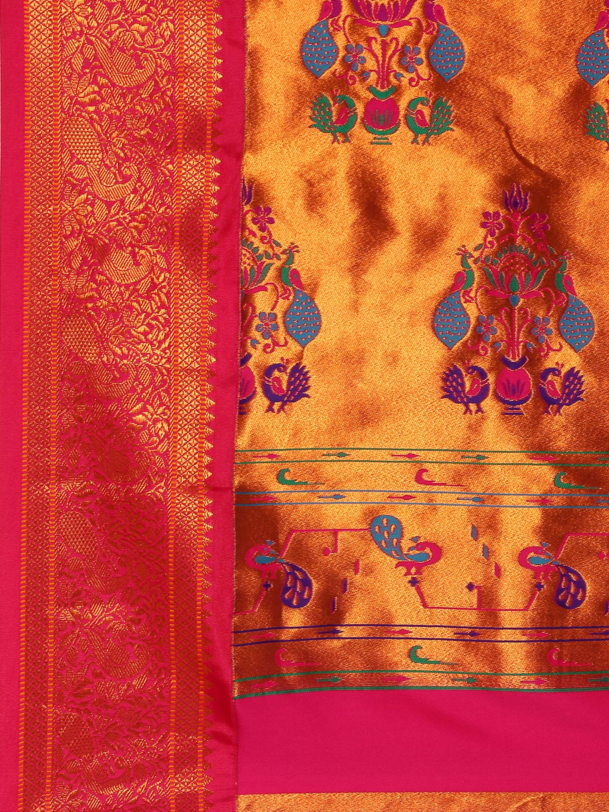 - Saree Work Type: Copper Zari Peshwai Nath Meena Butti