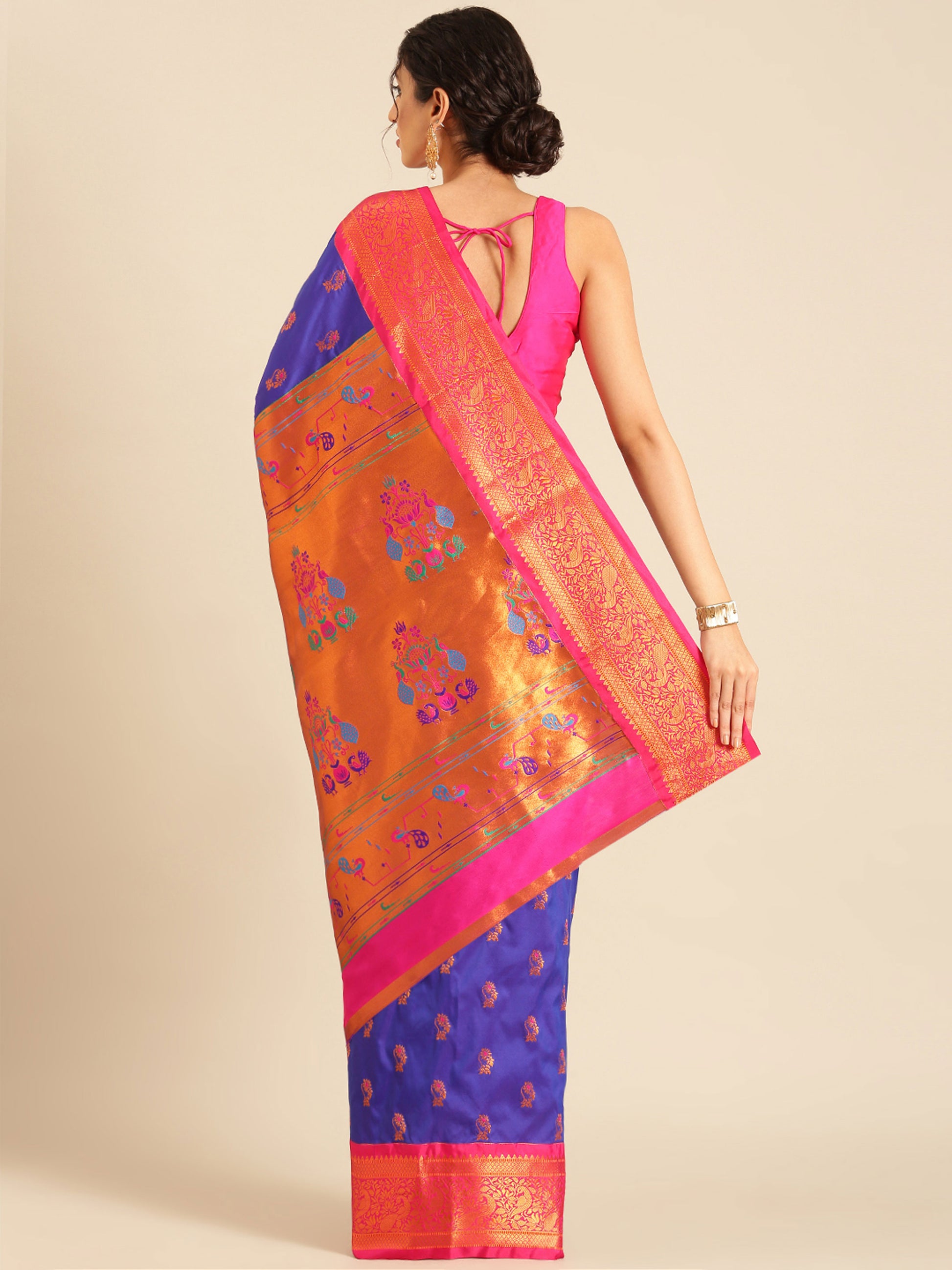 Sonkali Royal Blue & Pink Soft Silk Peshwai Nath Paithani Saree