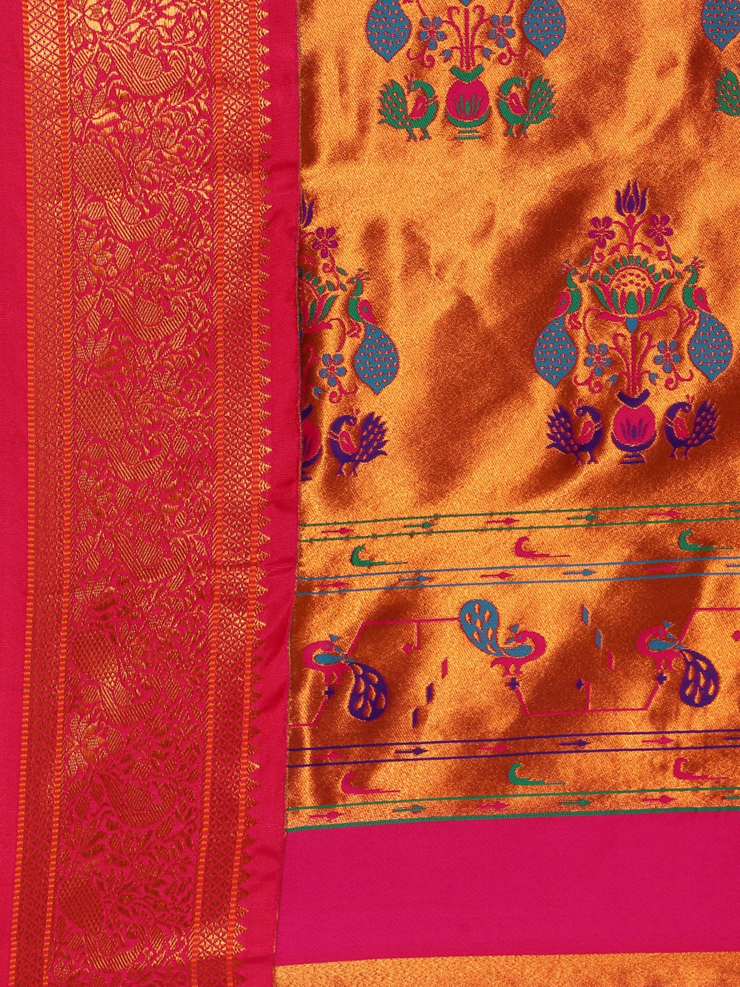 - Saree Work Type: Copper Zari Peshwai Nath Meena Butti