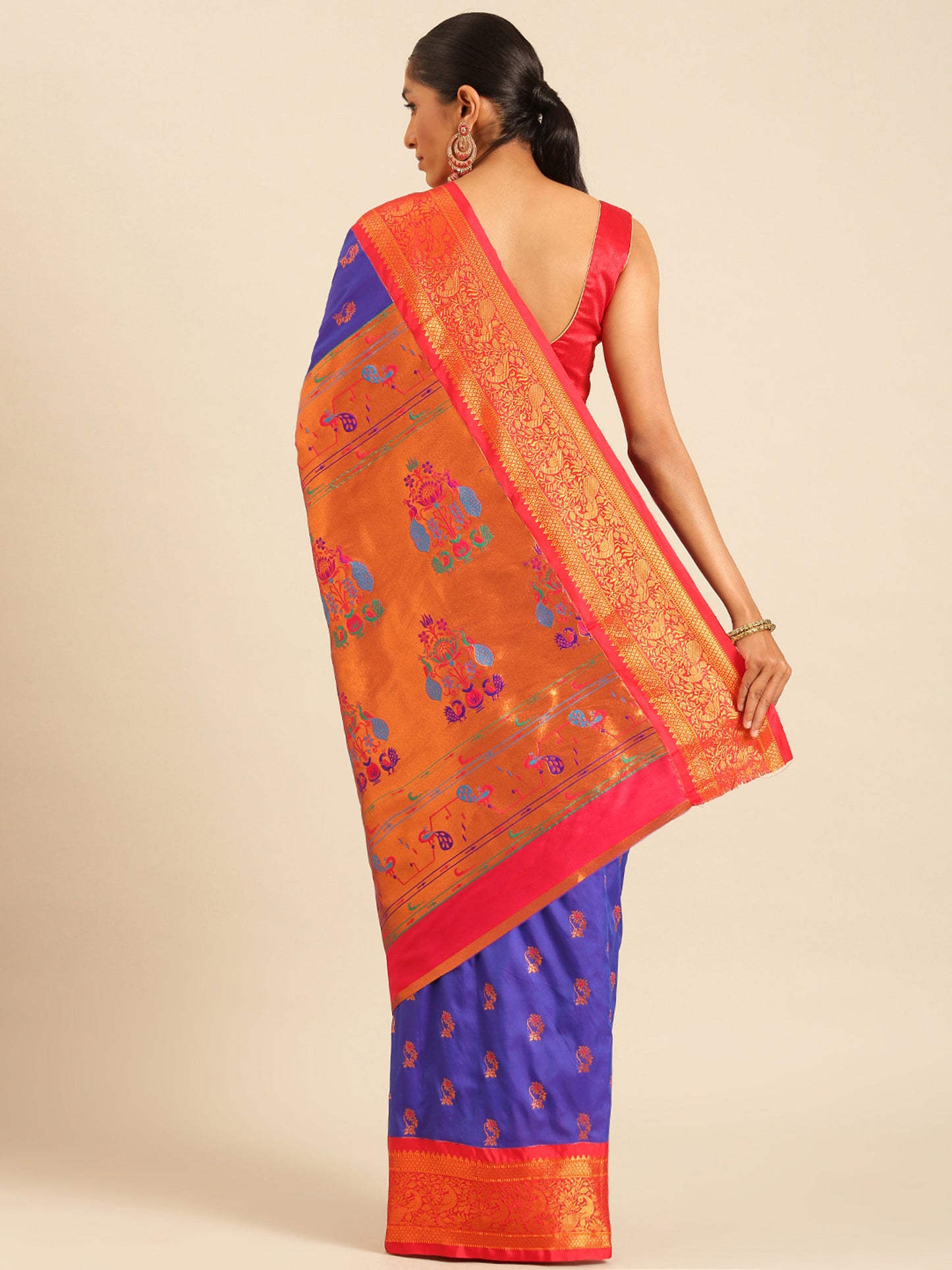 Sonkali Royal Blue & Red Soft Silk Peshwai Nath Paithani Saree