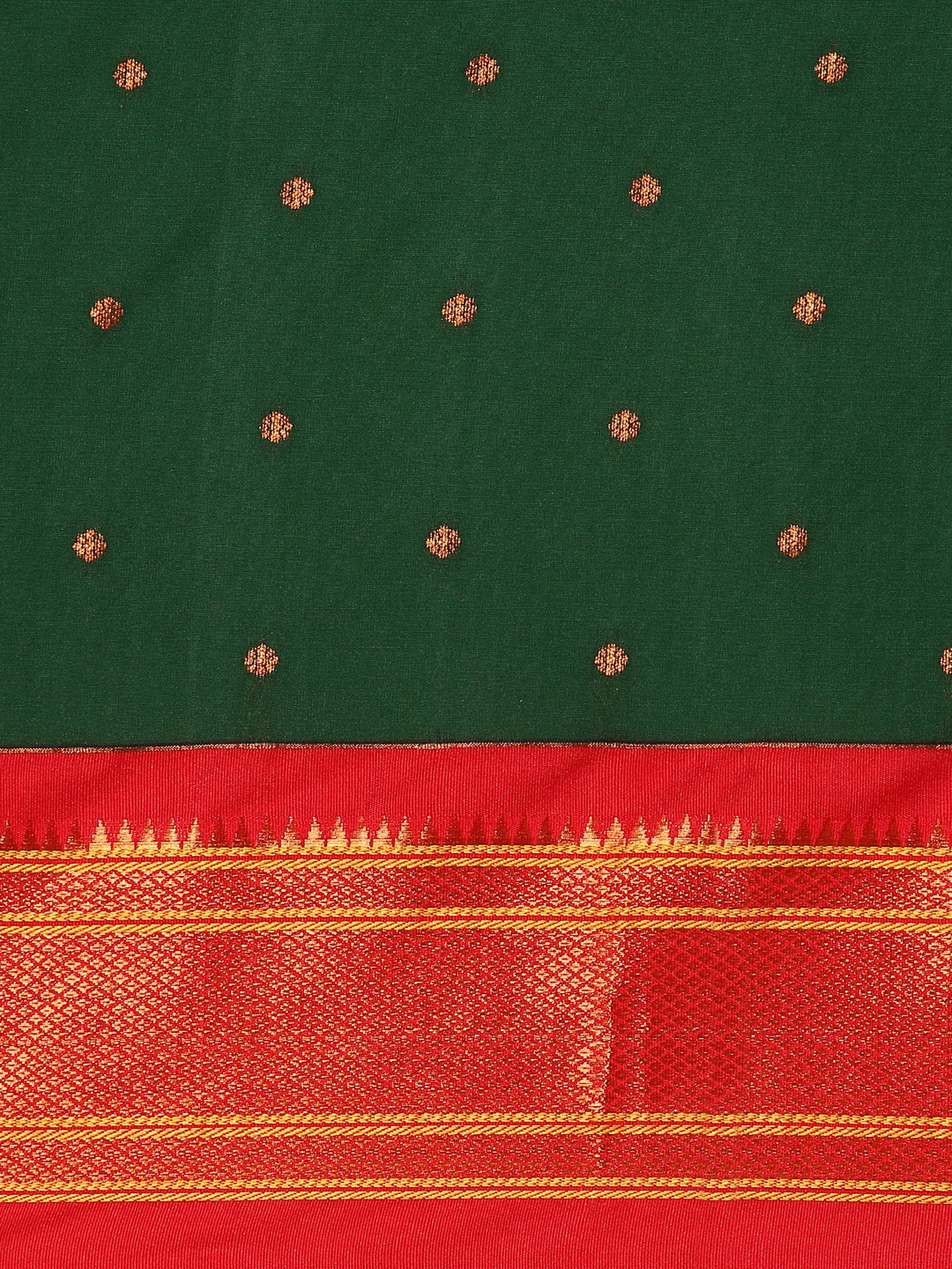 Swamini Bottle Green & Red Soft Silk Maharani Nauvari Paithani Saree