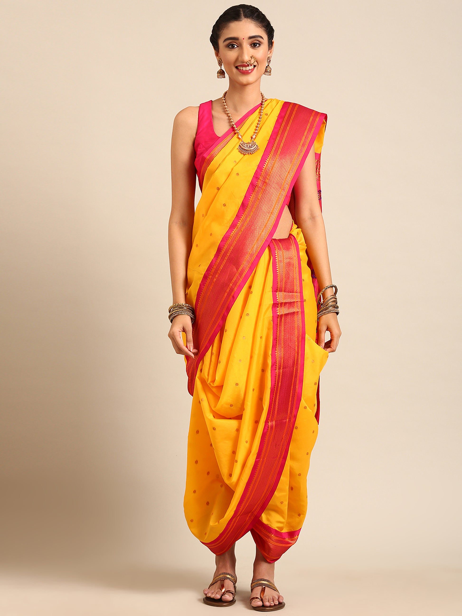 Swamini Haldi & Pink Soft Silk Maharani Nauvari Paithani Saree