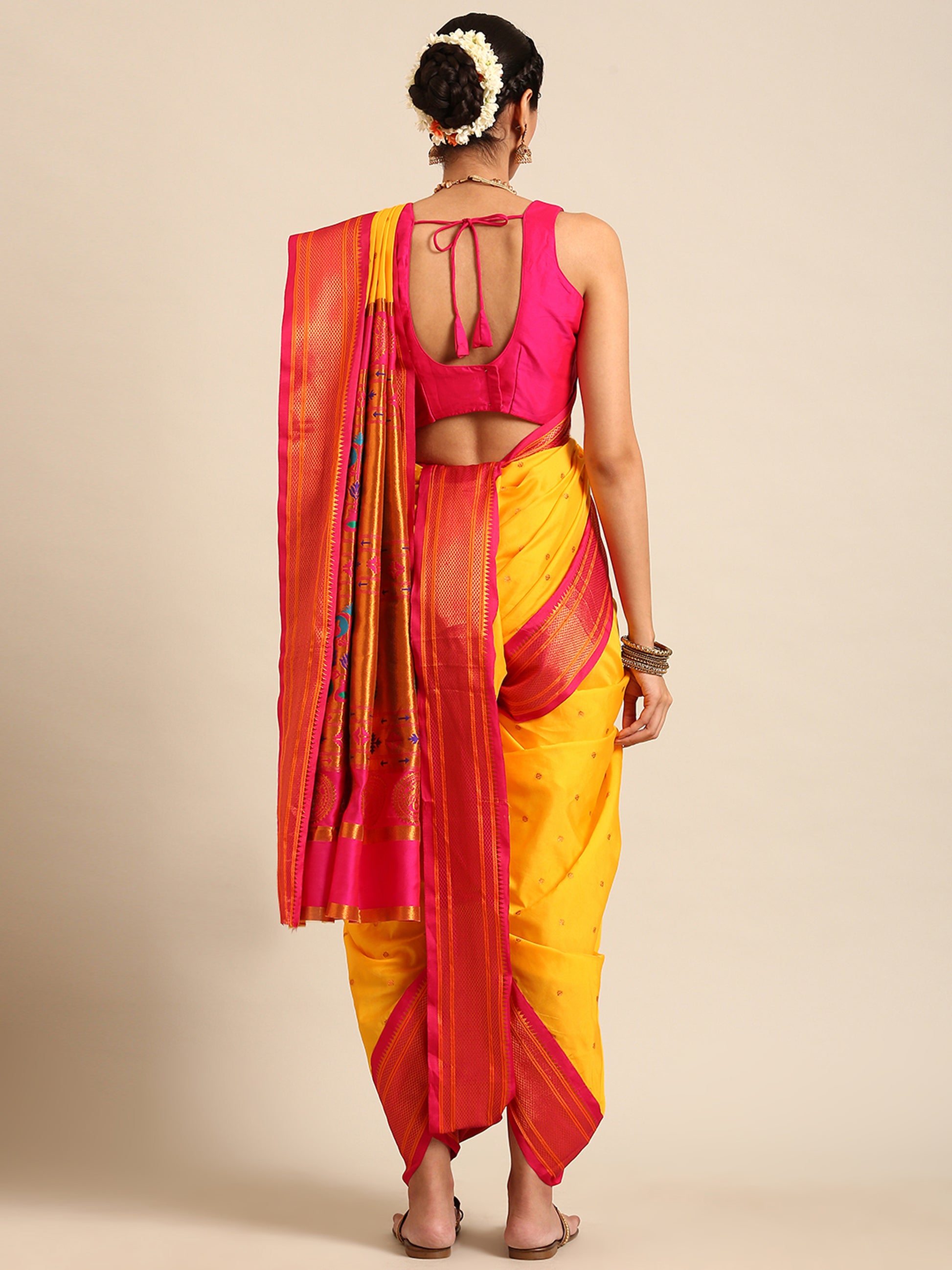- Saree Color: Haldi & Pink