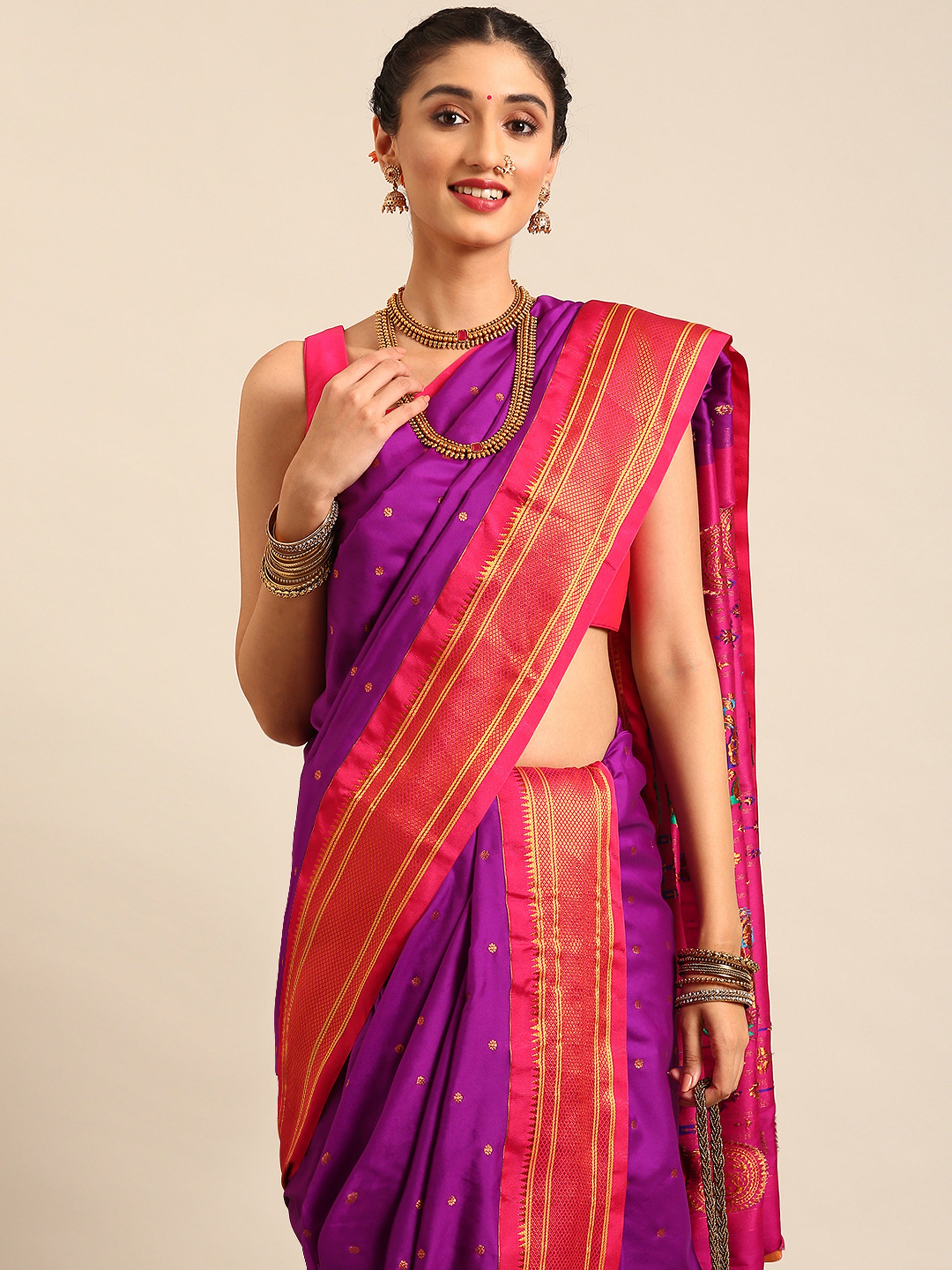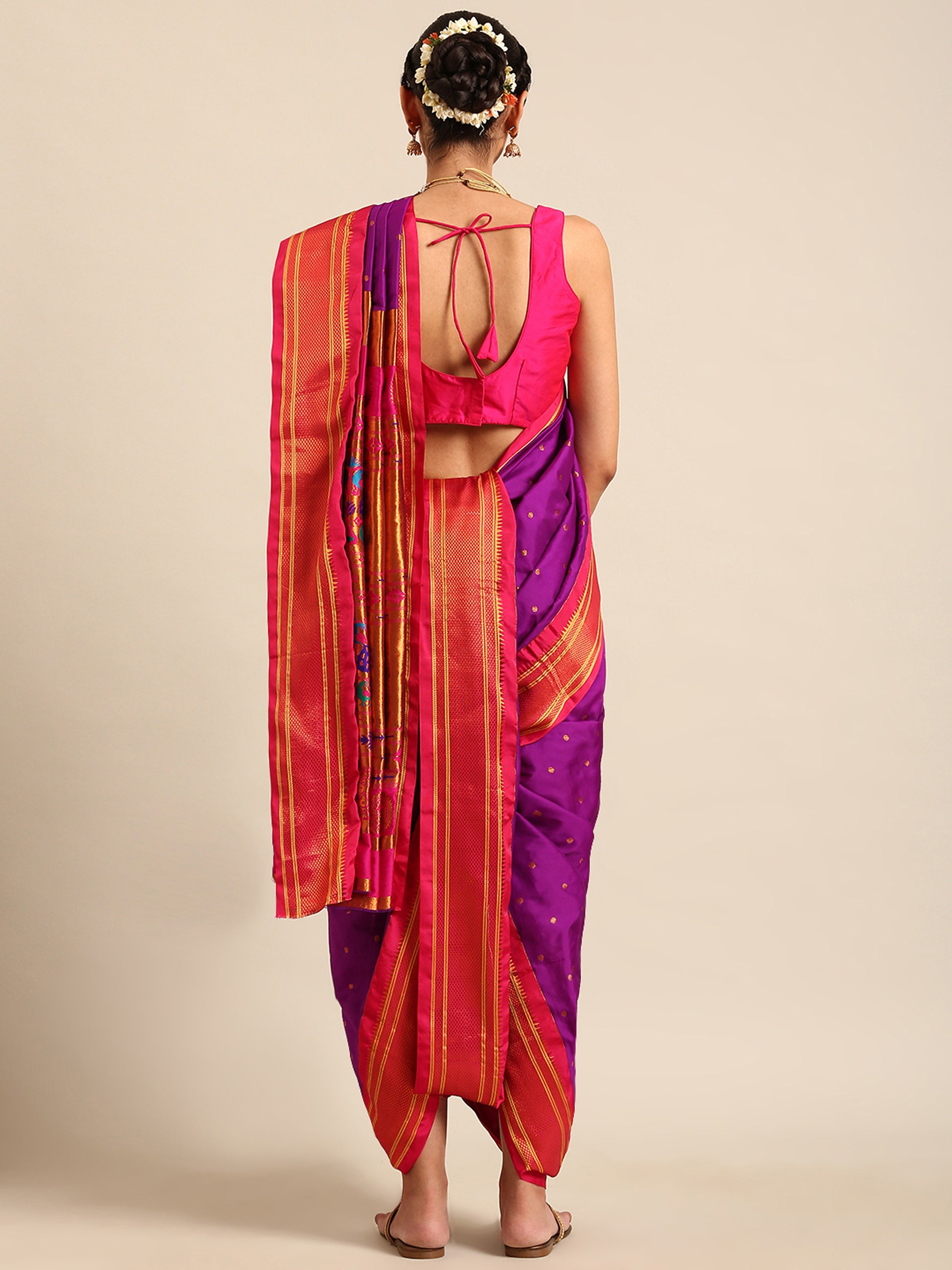 Swamini Purple & Pink Soft Silk Maharani Nauvari Paithani Saree