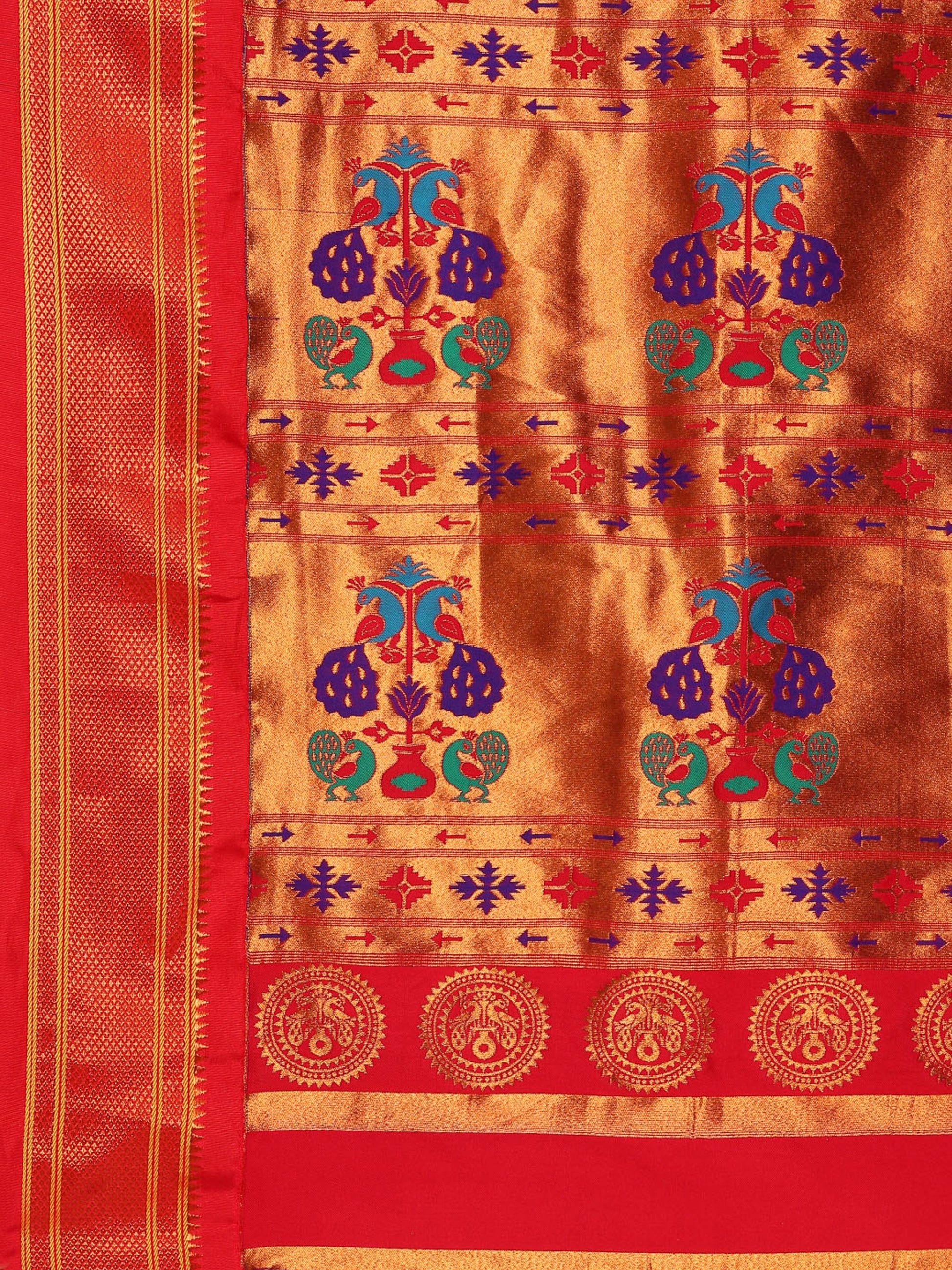 Swamini Rama & Red Soft Silk Maharani Nauvari Paithani Saree