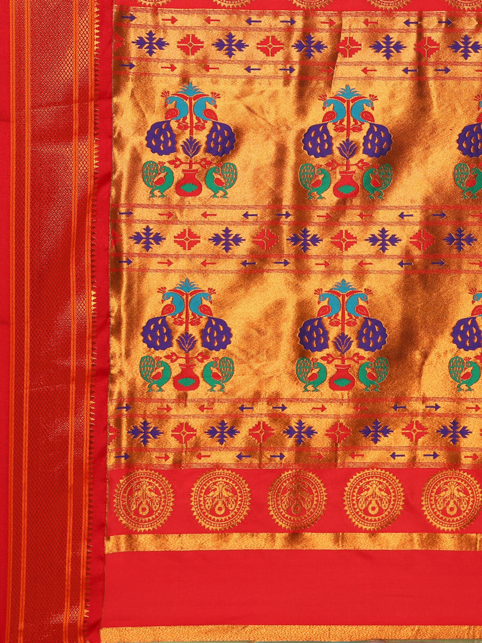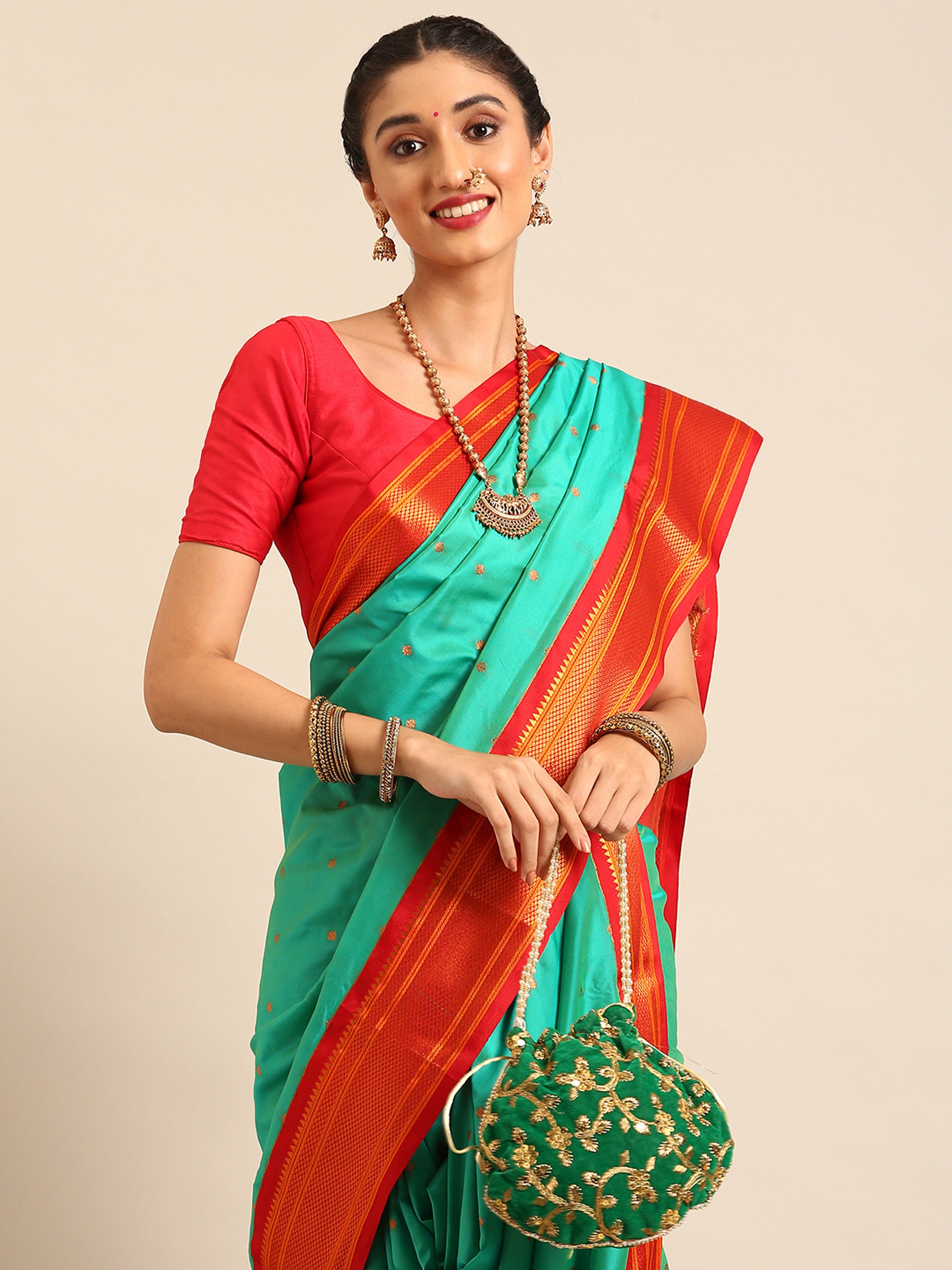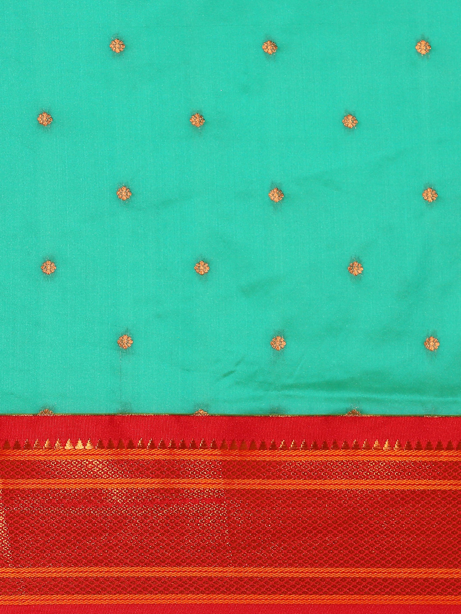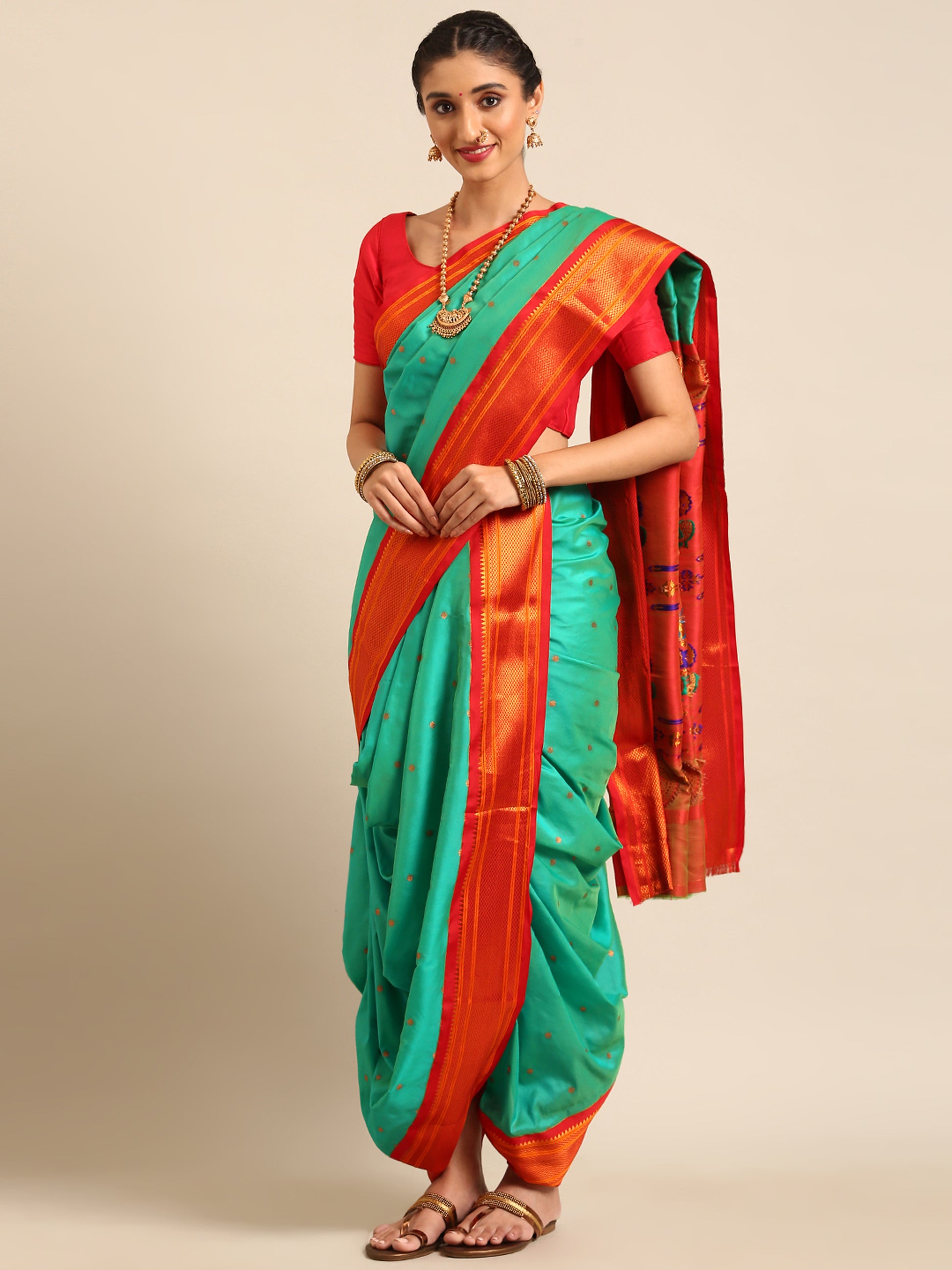 Swamini Sea Green & Red Soft Silk Maharani Nauvari Paithani Saree