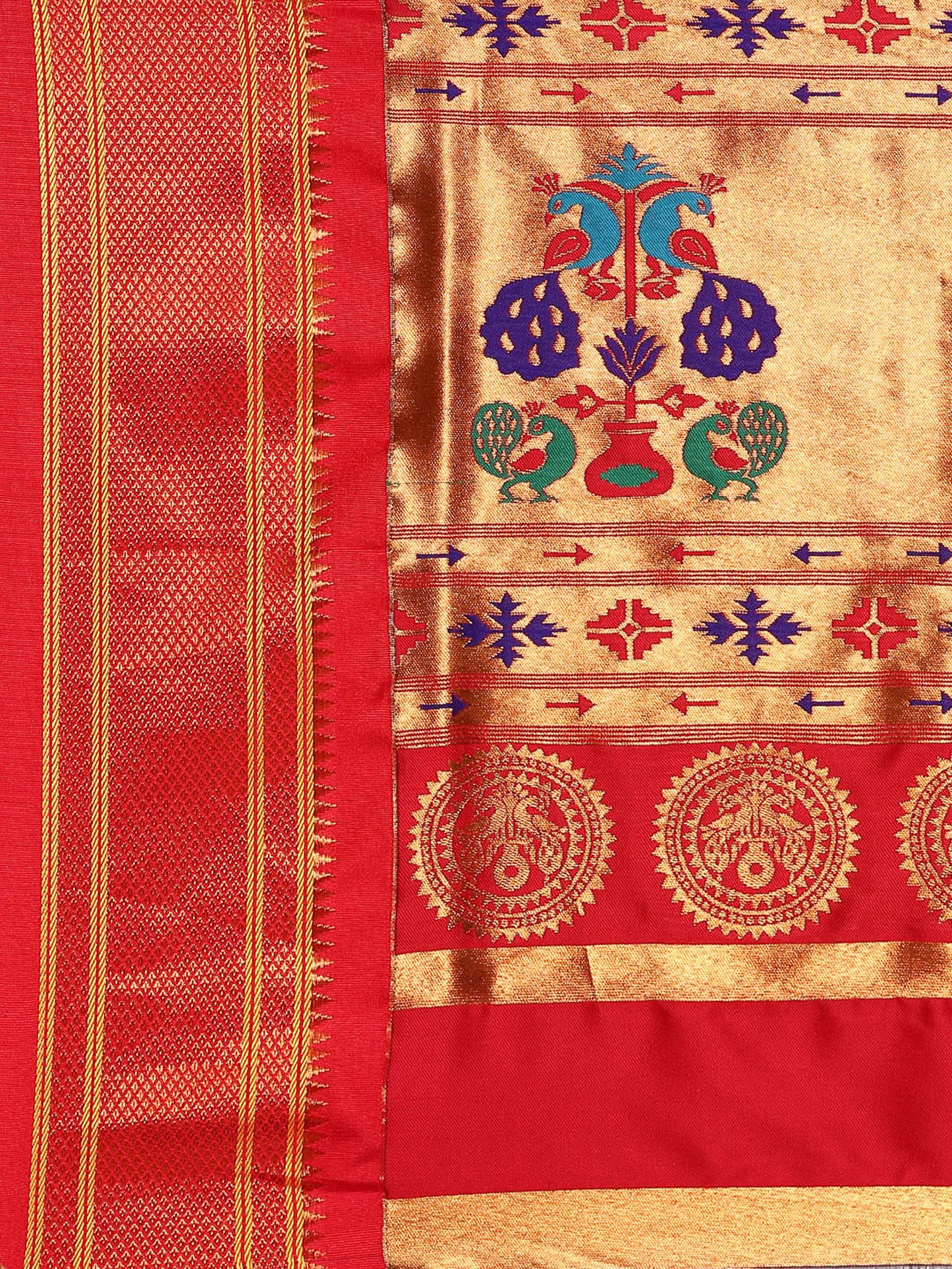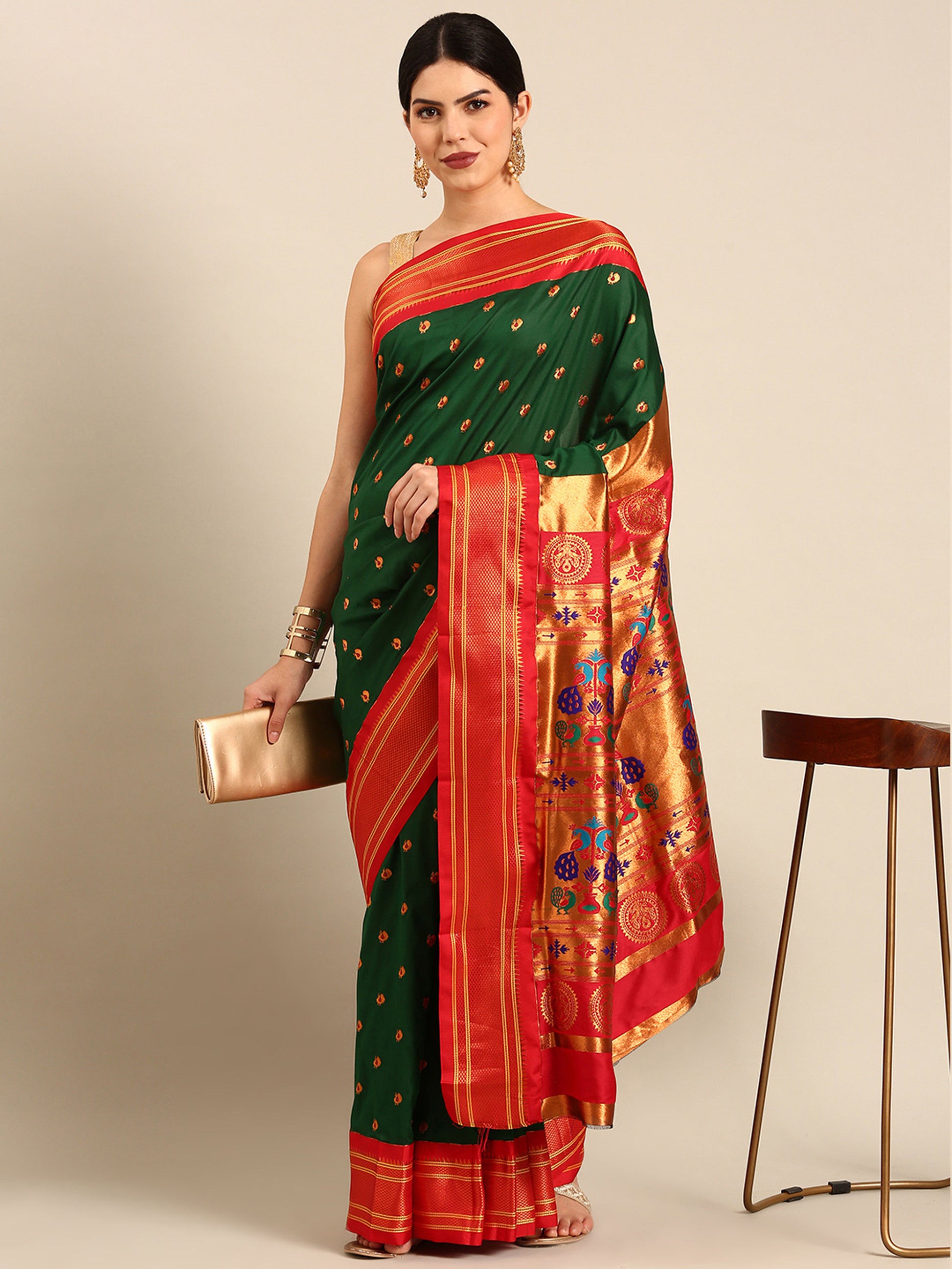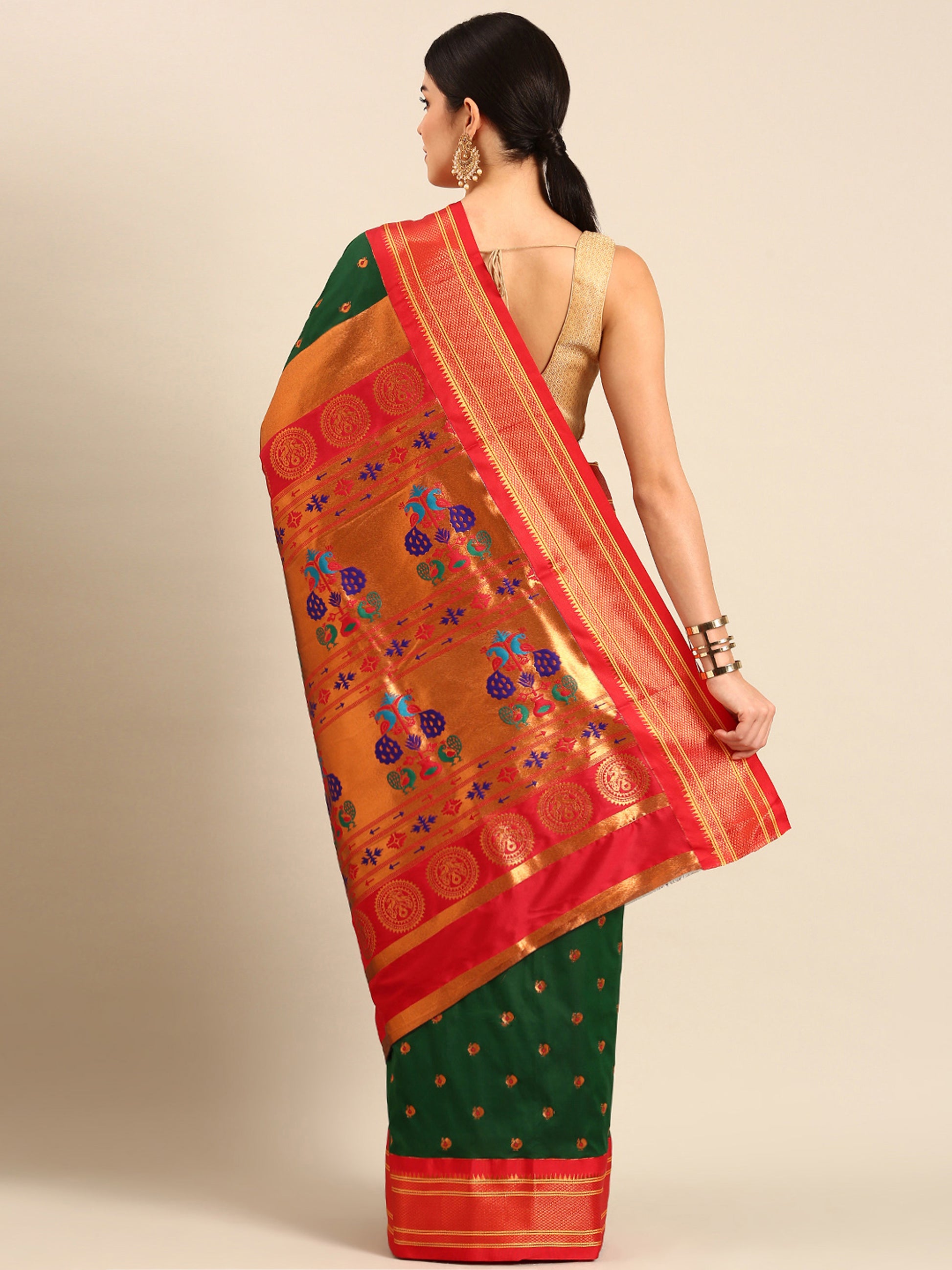 Umaa Bottle Green & Red Soft Silk Maharani Paithani Saree