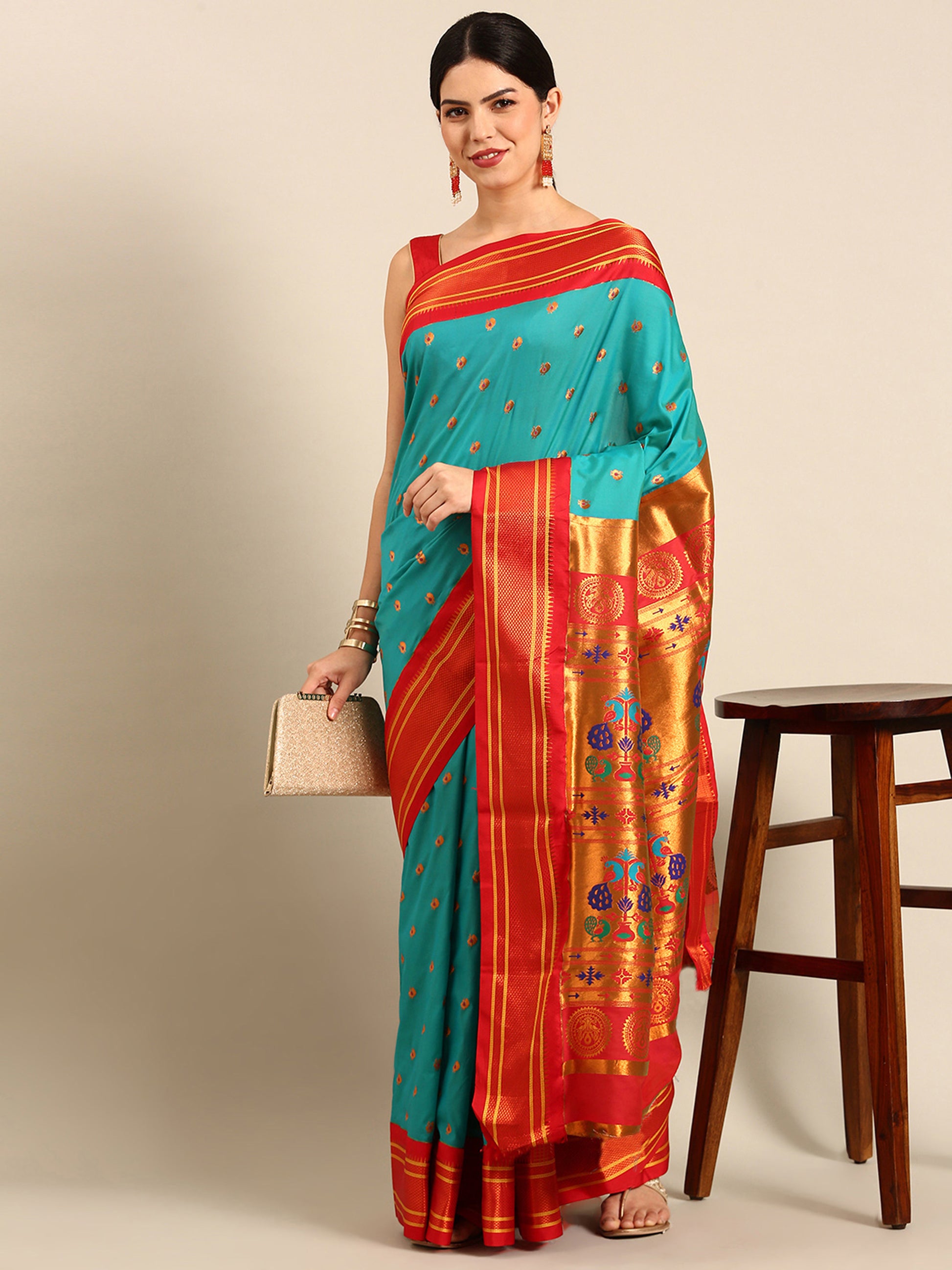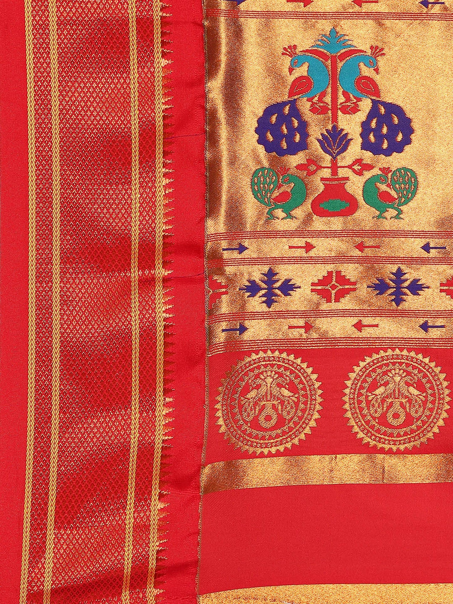 Umaa Chintamani & Red Soft Silk Maharani Paithani Saree