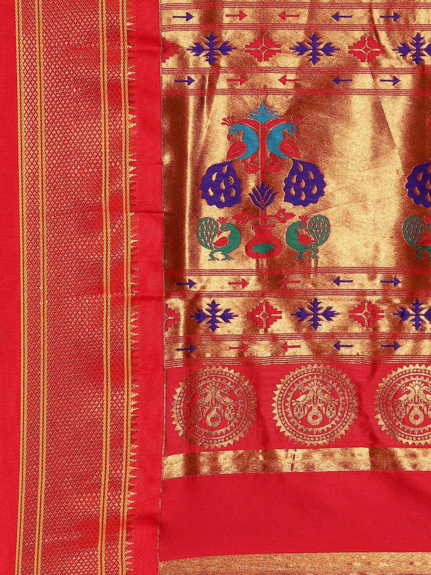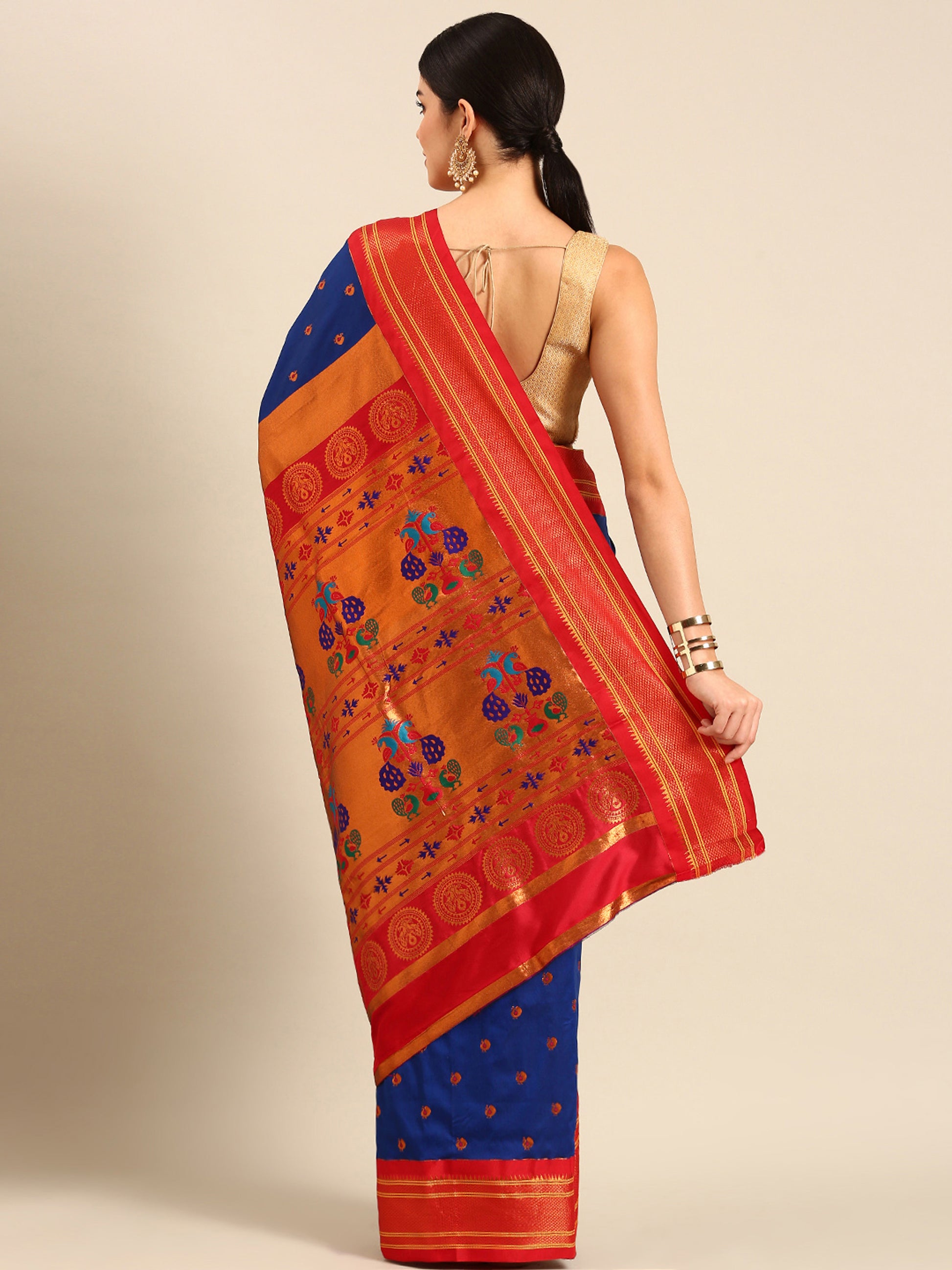 Umaa Royal Blue & Red Soft Silk Maharani Paithani Saree