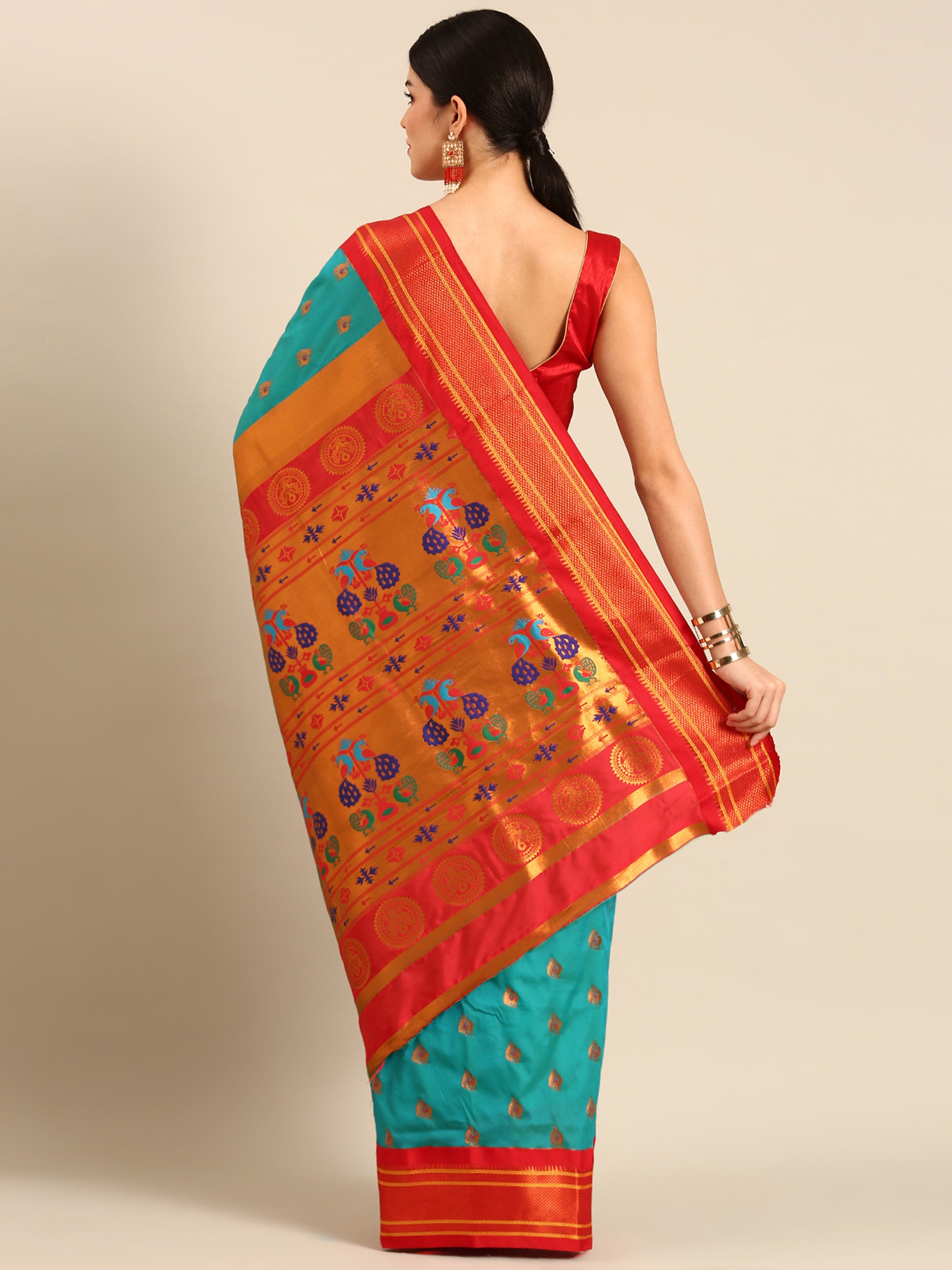Usha Chintamani & Red Soft Silk Maharani Paithani Saree