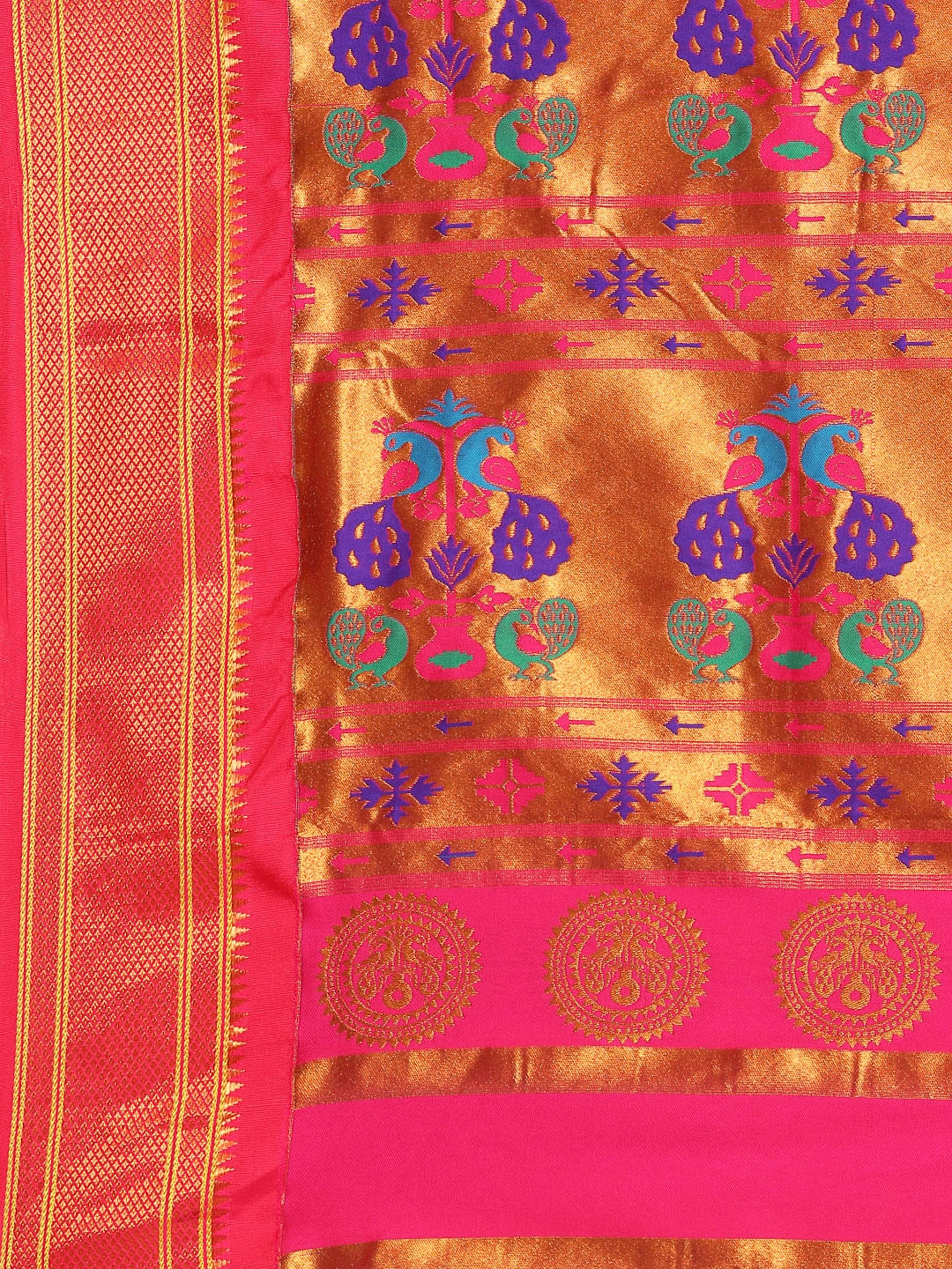 Usha Firozi & Pink Soft Silk Maharani Paithani Saree