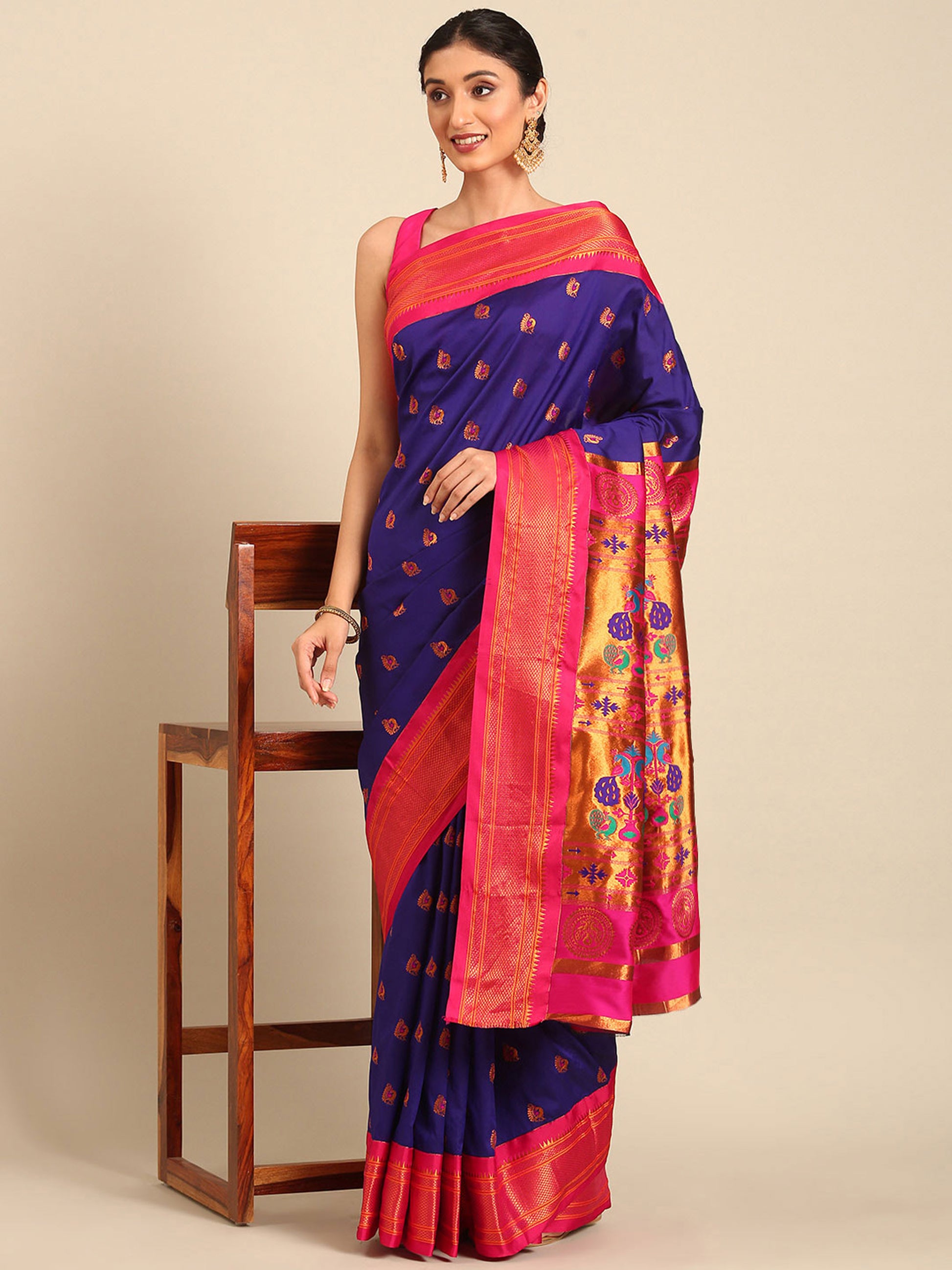 Usha Indigo Blue & Pink Soft Silk Maharani Paithani Saree