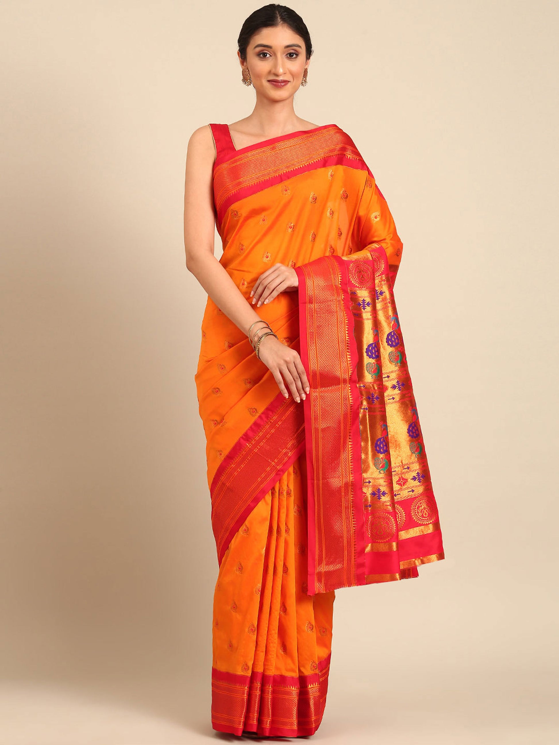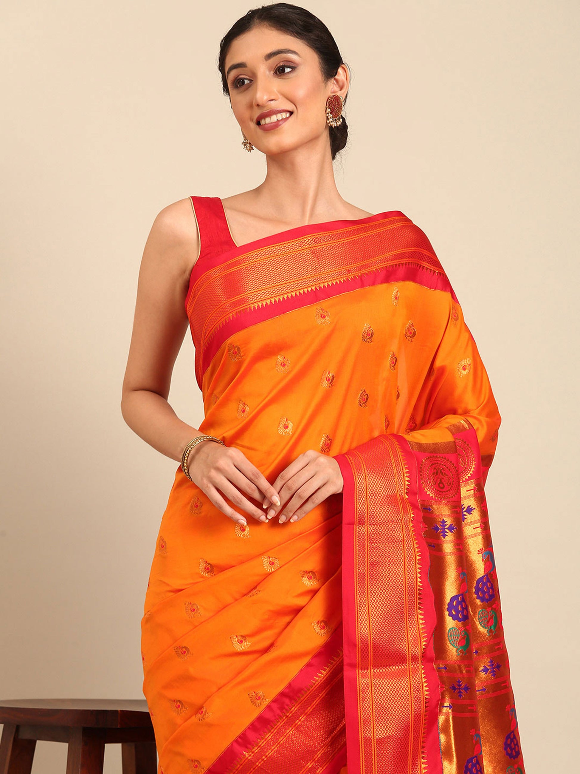 Usha Orange & Red Soft Silk Maharani Paithani Saree